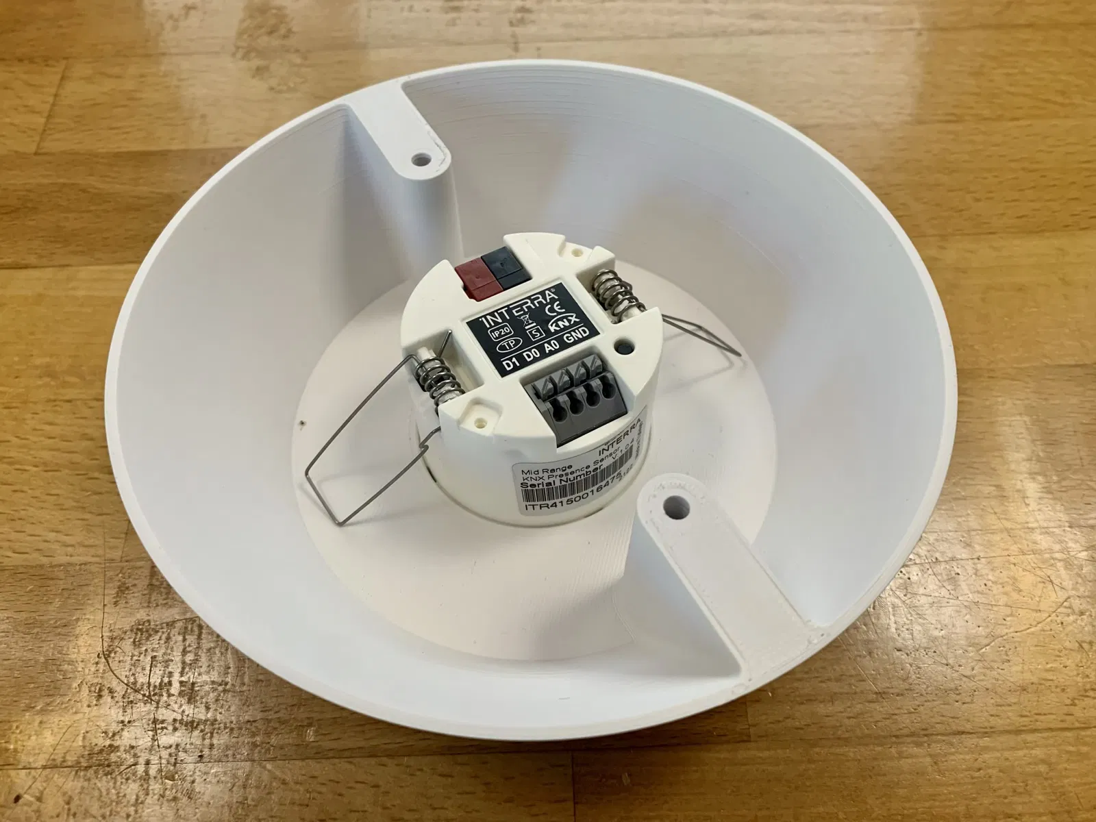 Giá treo trần hình nón cho cảm biến hiện diện Interra ITR415-0x01 KNX. In ra dễ dàng không cần hỗ trợ. Chiều cao ngàm là 40 mm nên bạn sẽ cần vít dài hơn để cố định.