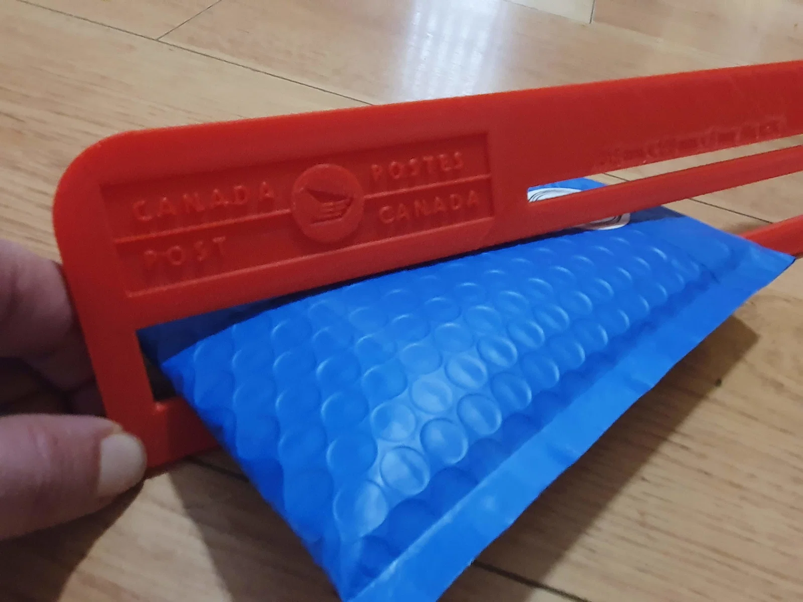 Đừng bất ngờ ở bưu điện. Dụng cụ đo này giúp bạn tự kiểm tra xem kiện hàng của mình có đủ tiêu chuẩn gửi thư (lettermail) hay không. Có ghi rõ kích thước và giới hạn cân nặng bằng chữ nổi, bạn không cần phải tra cứu lại.