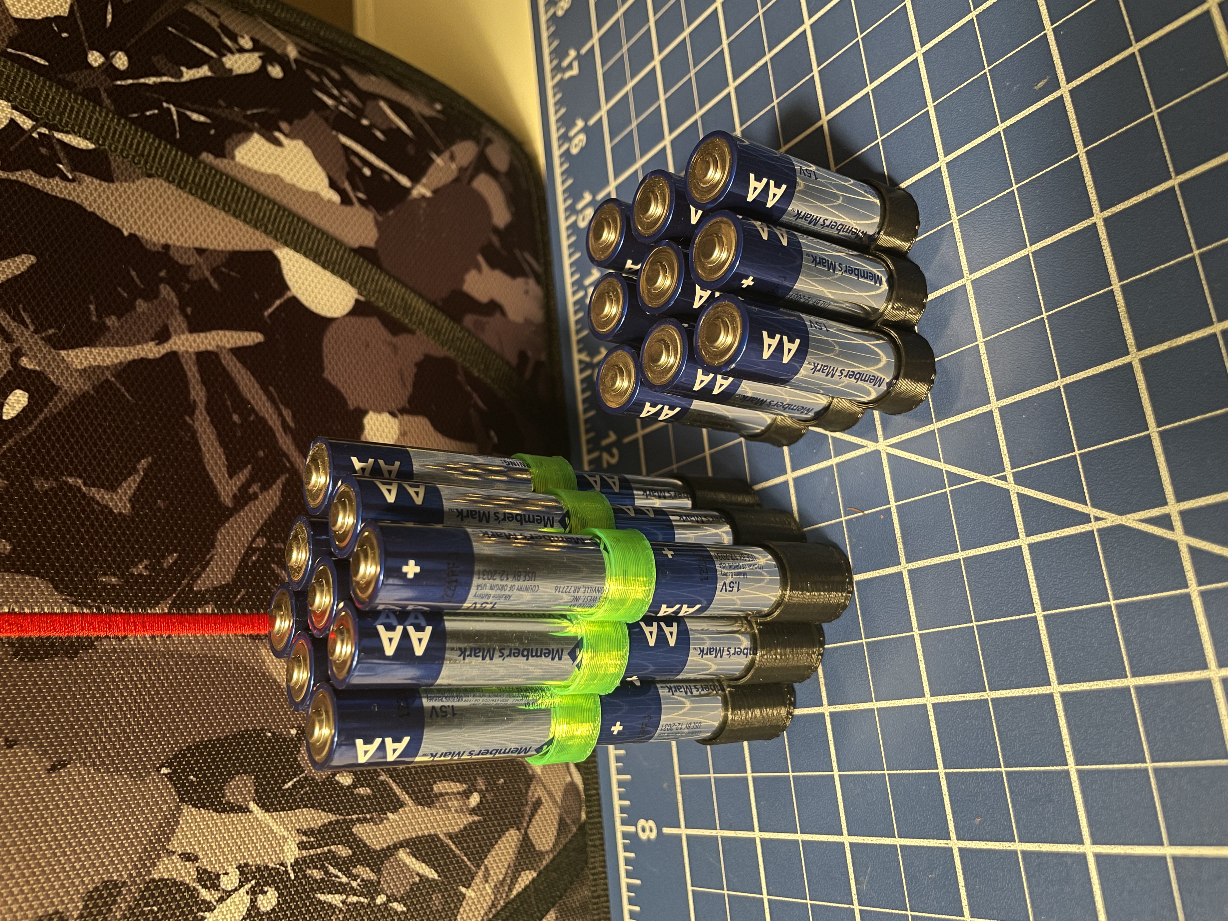 Bạn cứ in ra bao nhiêu tùy thích, mẫu lớn hơn thì chứa được pin AA(*9) và AAA(*8), còn mẫu nhỏ hơn thì chứa được pin AA(*9). Tui có thể sẽ làm thêm kích thước thứ 3 nữa, nhưng mà xem sao đã. Nếu cái này mà hot thì tui sẽ phát triển thêm hệ thống này và làm nó thành dạng module tháp cao hơn.