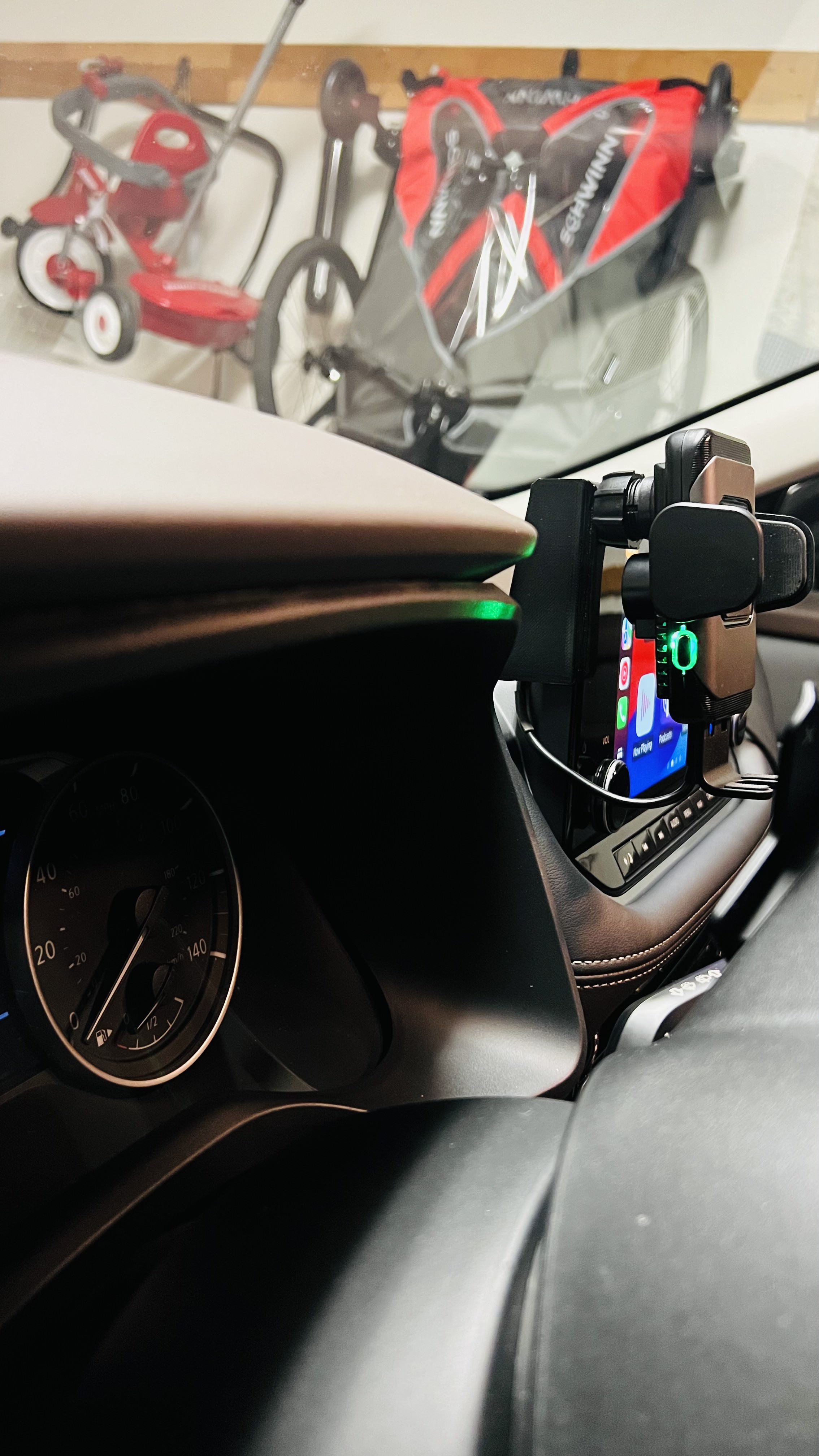 Tao mới đổi xe Nissan Rogue 2023 nè, đang kiếm cái đế để điện thoại xài. Cái bảng táp-lô da nó làm khó kiếm chỗ gắn đế điện thoại quá, còn mấy cái đế gắn kính thì nóng quá nó rớt hoài.