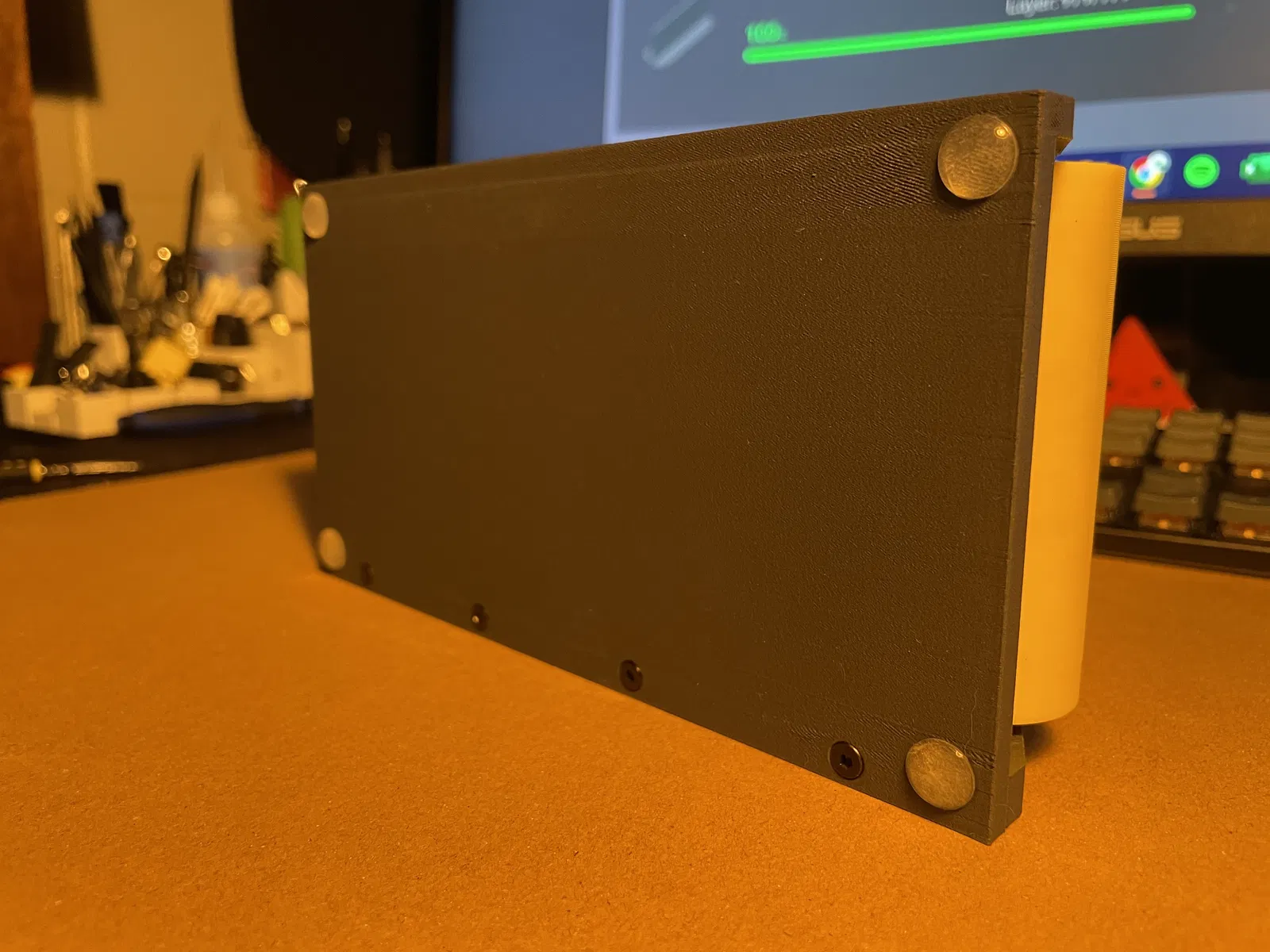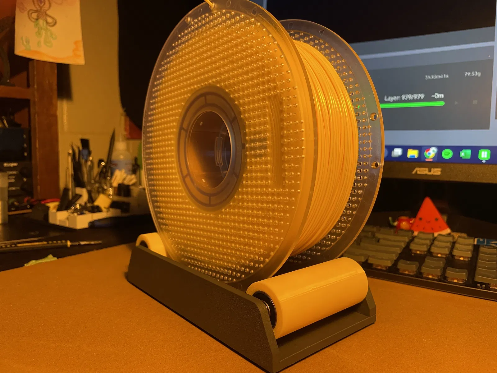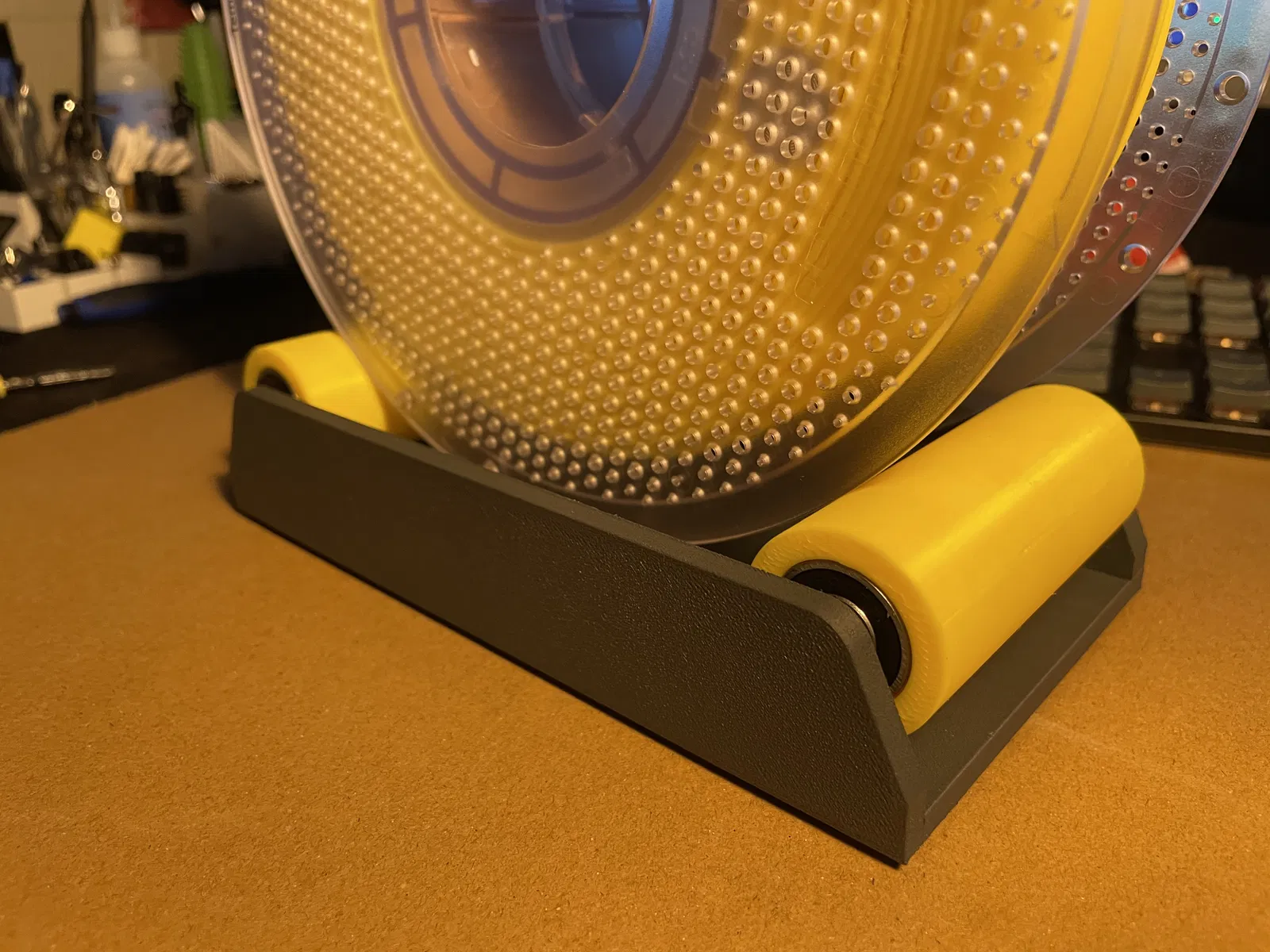 Cái này là con lăn sợi nhựa, xài siêu mượt luôn. Nó fit cho mấy cuộn sợi nhựa rộng tới 80mm. Cái con lăn có gân giúp giữ cho spool nằm ngay tâm đó mấy ông.