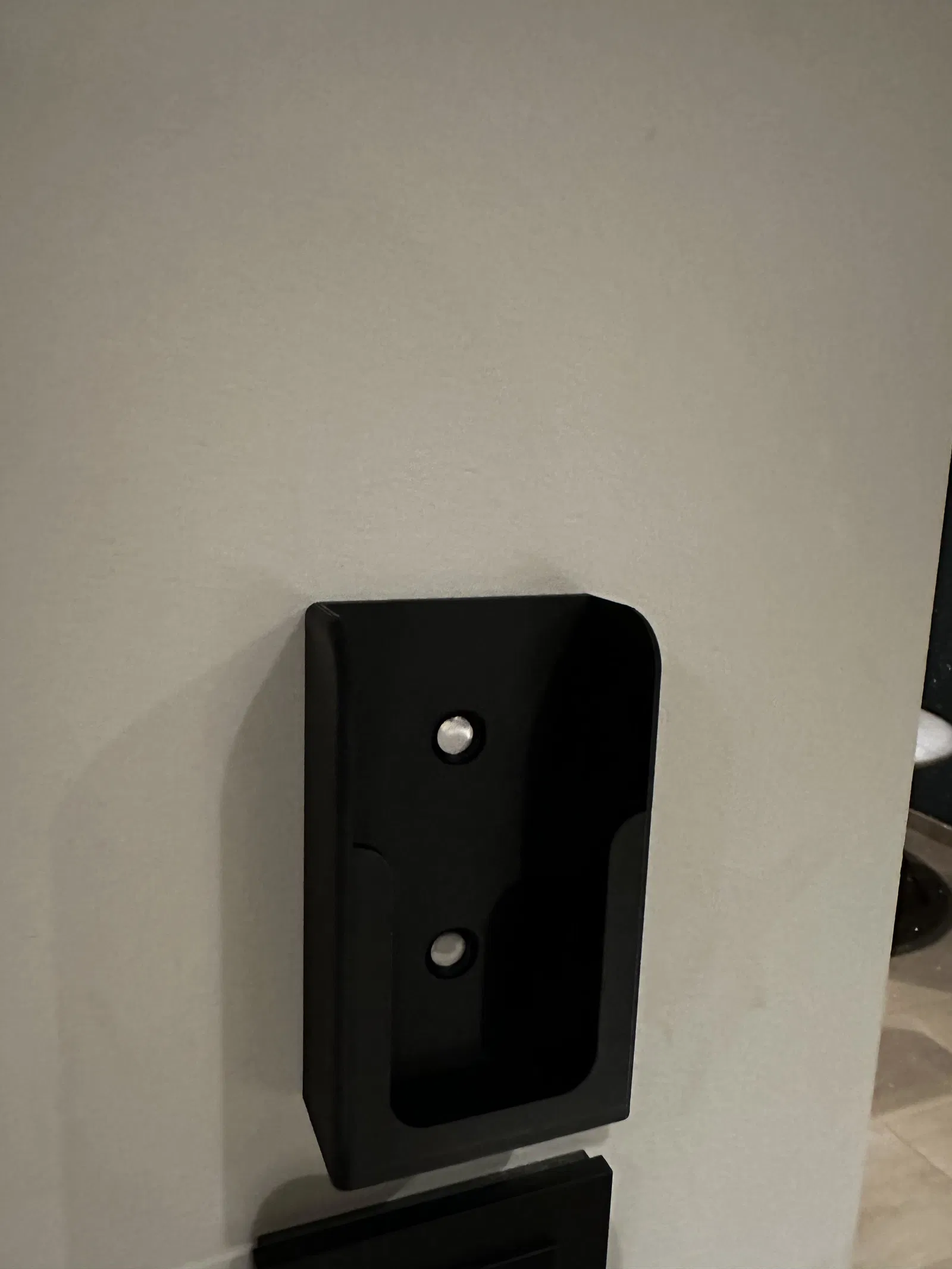 Giá treo tường cho bộ điều khiển máy lạnh Mitsubishi. Có 2 lỗ để bắt vít, mặt sau cũng có thể dán băng keo hai mặt.