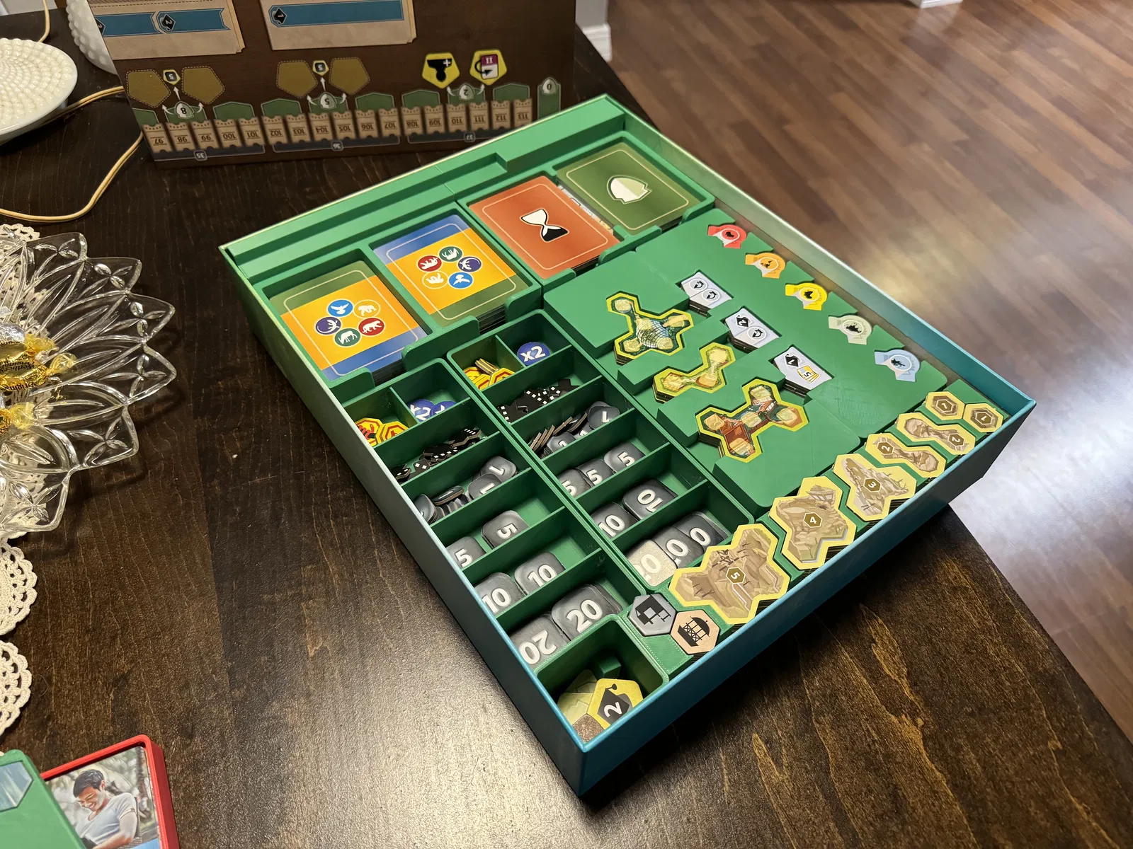 Đây là một bộ organizer (hộp đựng phụ kiện) để vừa vặn bên trong hộp game Ark Nova của bạn. Đây là bản phối lại từ thiết kế gốc của yourarm, và nhiều cải tiến đã được thực hiện để các mô hình dễ sử dụng và in ấn hơn. Tôi cũng đã sửa đổi nhiều bộ phận để chúng tương thích với bản mở rộng Marine Worlds mới. Bộ organizer này cũng chứa được các bản đồ bổ sung được thêm vào trong Zoo Map Pack 1.