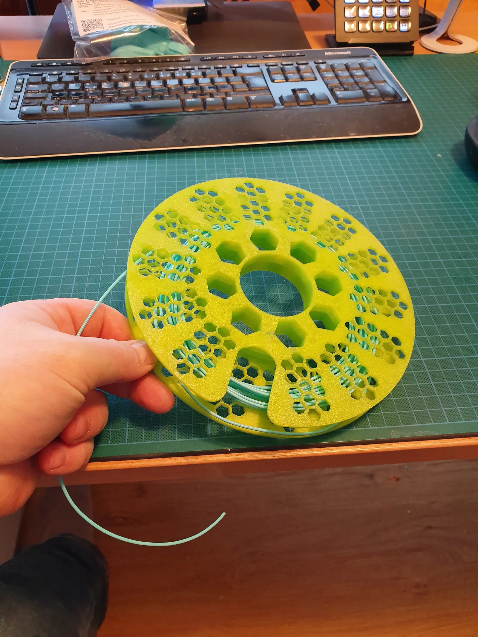Cuộn mẫu filament này gồm 2 mảnh, bạn chỉ cần in 2 cái rồi dán lại với nhau bằng keo. Nó vừa với các mẫu Makerbox và máy in 200x200. Hướng dẫn in chi tiết bên trong.