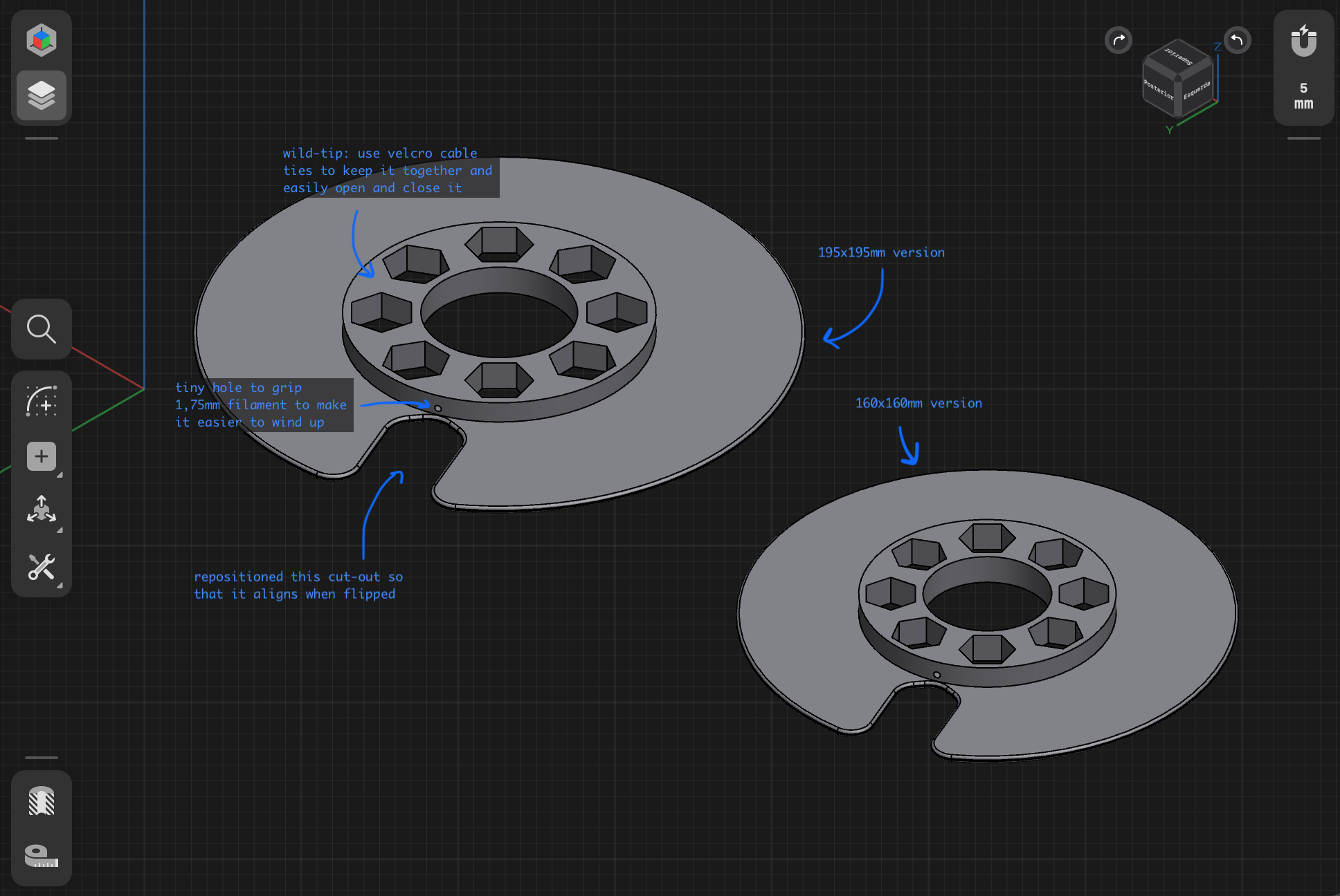 - Làm thêm một phiên bản nhỏ hơn để vừa với máy 'ender 2 pro' của tui, kích thước 16x16cm.