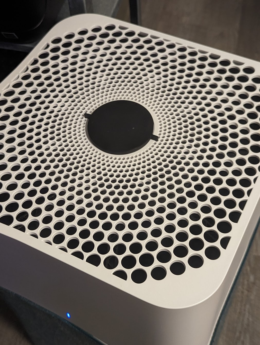 Con mèo của tui hay leo lên máy lọc không khí rồi bấm nút nguồn bật/tắt hoặc tăng/giảm tốc độ quạt. Cái nắp che này có 2 cái chốt, nó sẽ khớp vào 2 lỗ nằm gần nút bấm nhất.