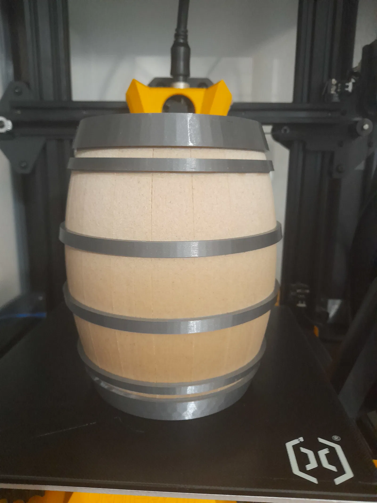 Hộp tiết kiệm trang trí, in bằng sợi gỗ. Vòng kim loại làm từ PLA. Vòi phun 0,4mm