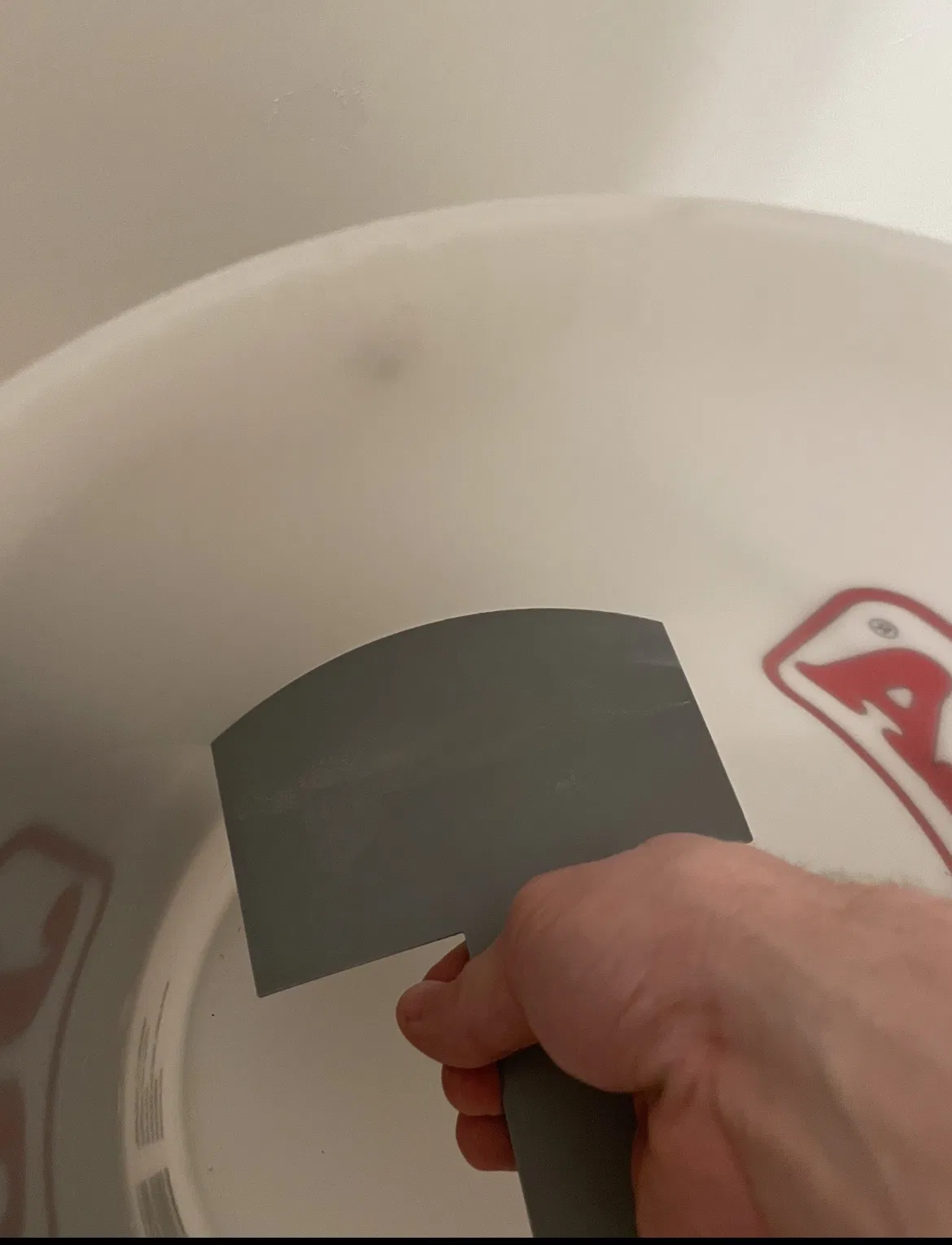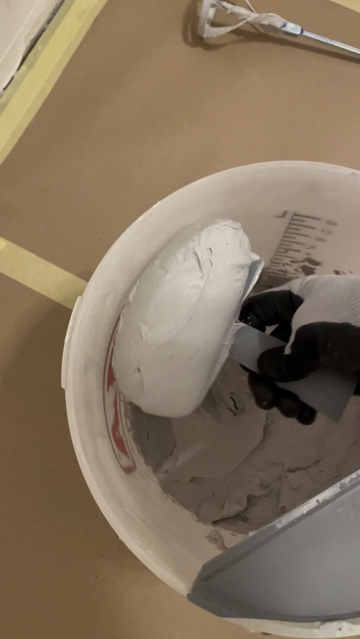 Một cái cạp vét cong cho thùng và một cái "cạp vét cho cạp vét cong" hoặc bay trét bột của bạn để gạt bớt bột trét dư vào thùng một cách gọn gàng.