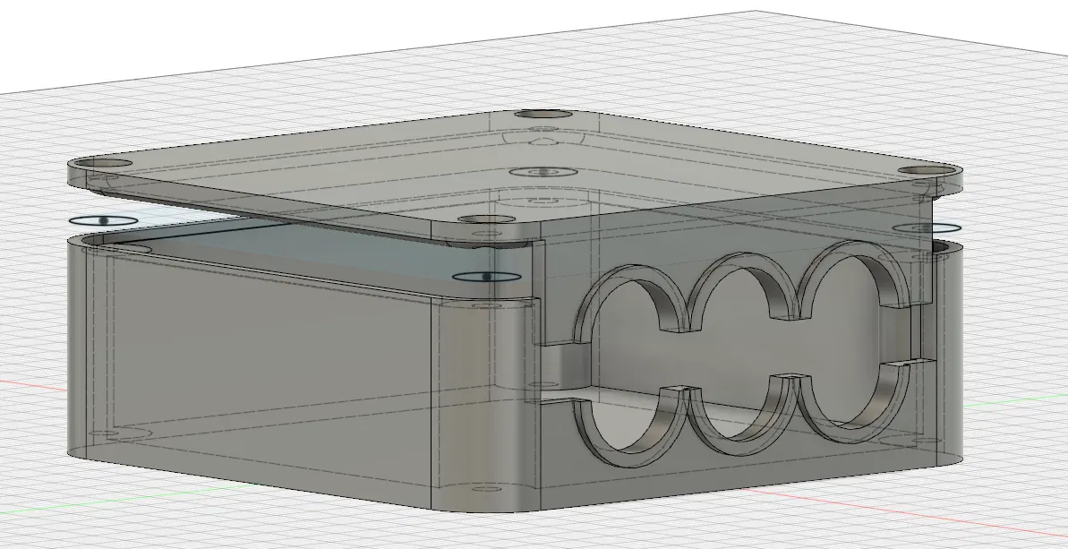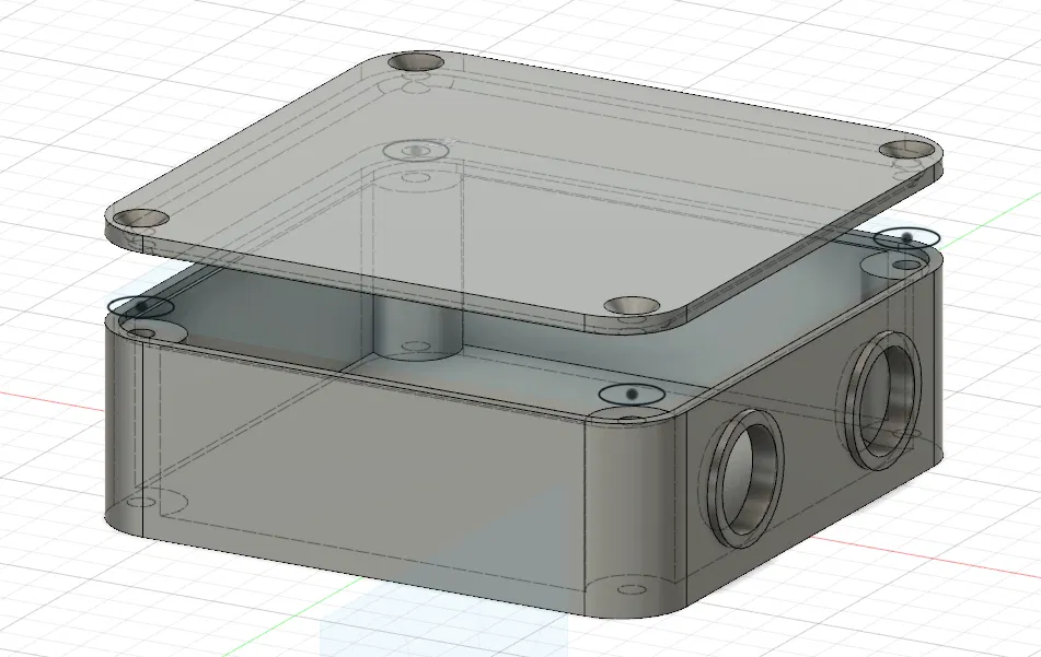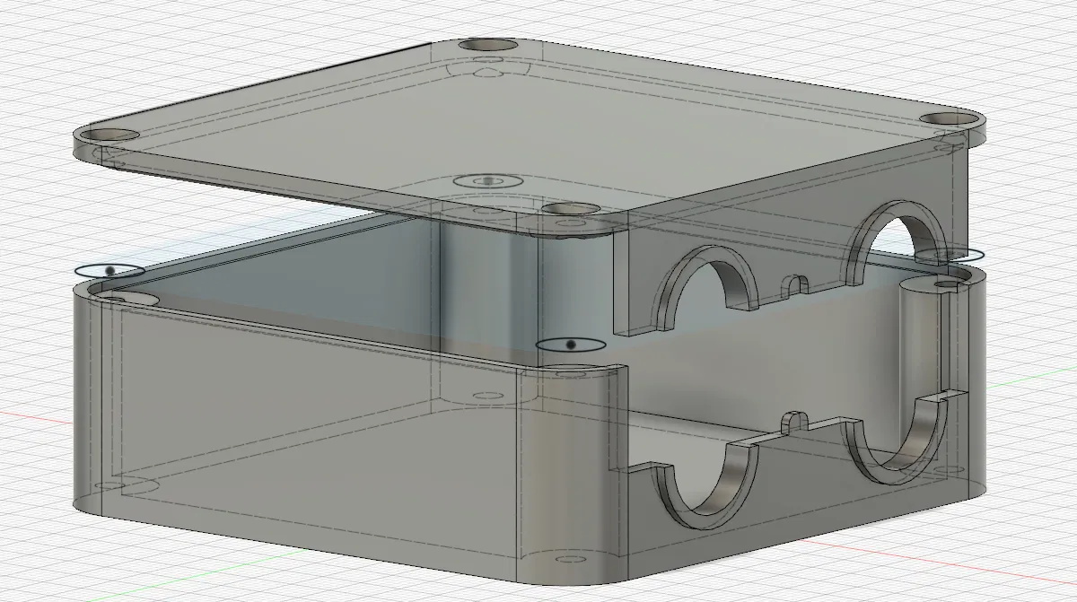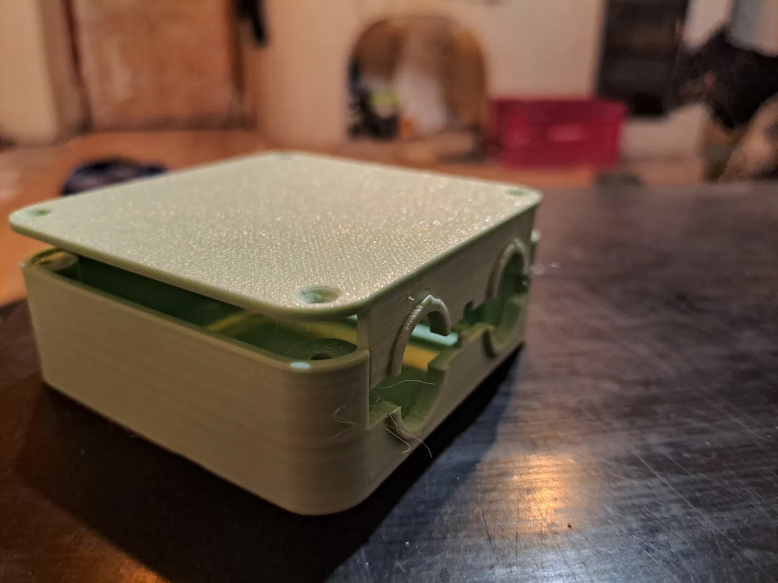 Hộp đựng dây điện và đầu nối, cao 25 mm, có 2 lỗ 12 mm. Phiên bản V2 có lỗ chia. Phiên bản V3 có 3 lỗ. Hộp này in bằng PLA, muốn lỗ đẹp thì để support, còn không thì bỏ qua cũng được. Lỗ bắt vít 3mm.