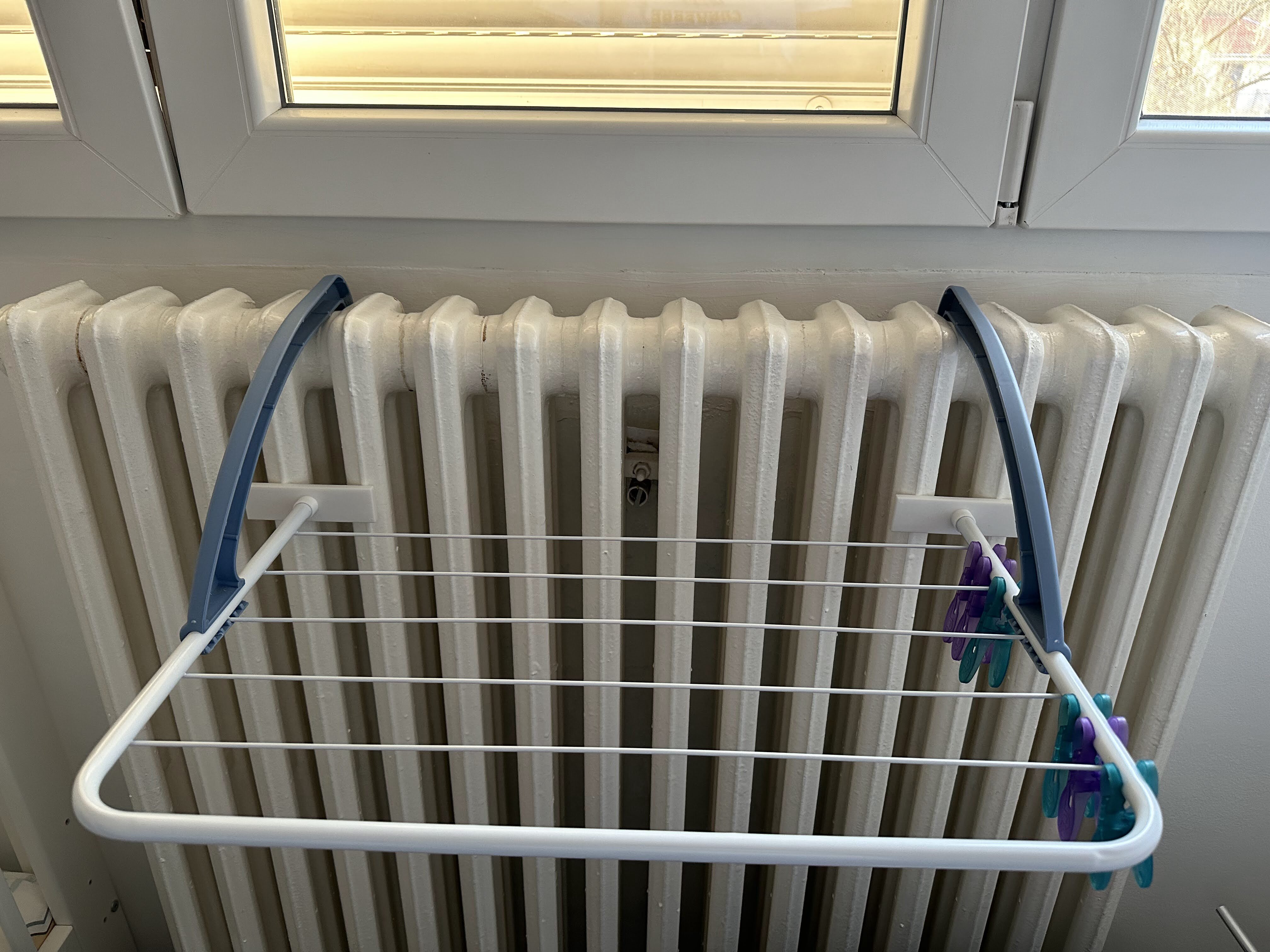 Giá phơi đồ tản nhiệt - Chân đế phơi đồ phù hợp với bộ tản nhiệt đời cũ (có khe hở lớn). Mẫu này giúp khắc phục vấn đề khi giá phơi đồ không đặt được trên các bộ tản nhiệt có nan lớn, giúp bạn phơi đồ tiện lợi hơn.