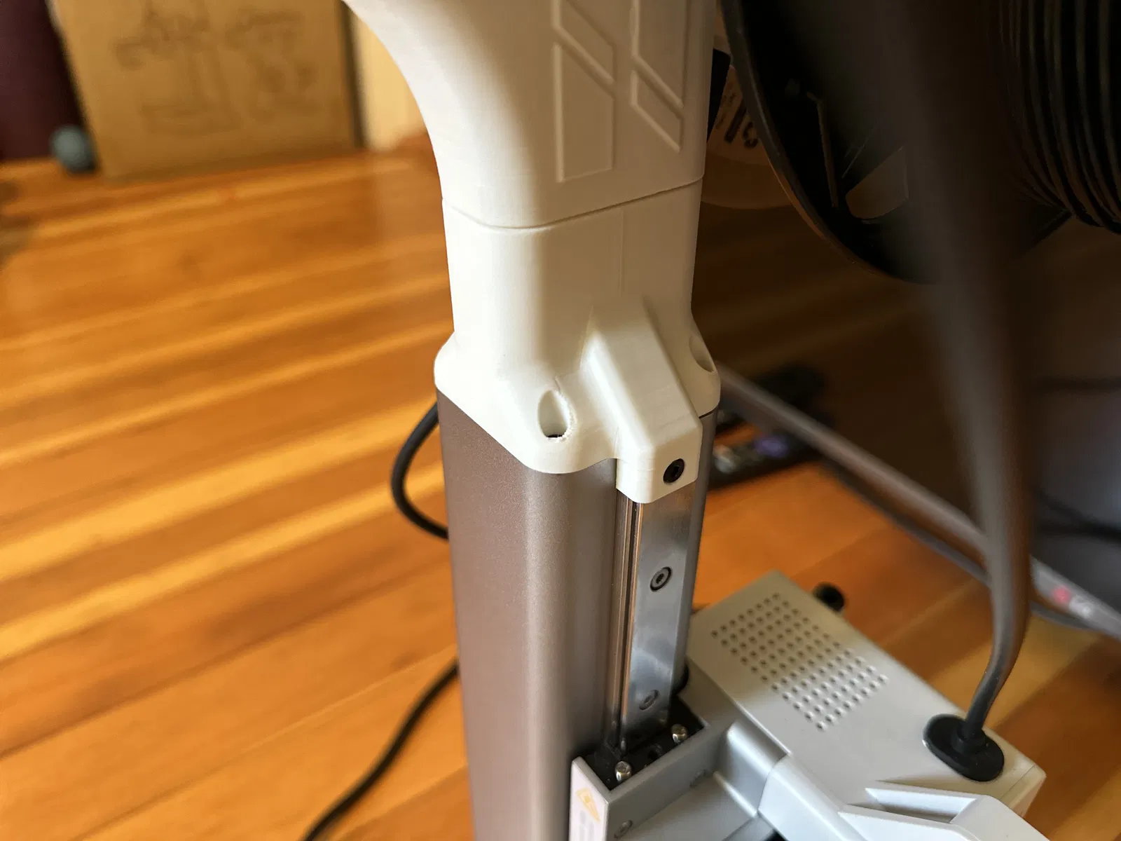 Nó thay thế 2 bộ phận bằng nhựa ở trên cùng của trục Z và sử dụng cùng ốc vít để gắn đế của bộ nâng được in. Một thanh in có dung sai chặt được lắp vào đó và khay AMS-Lite trượt lên trên.