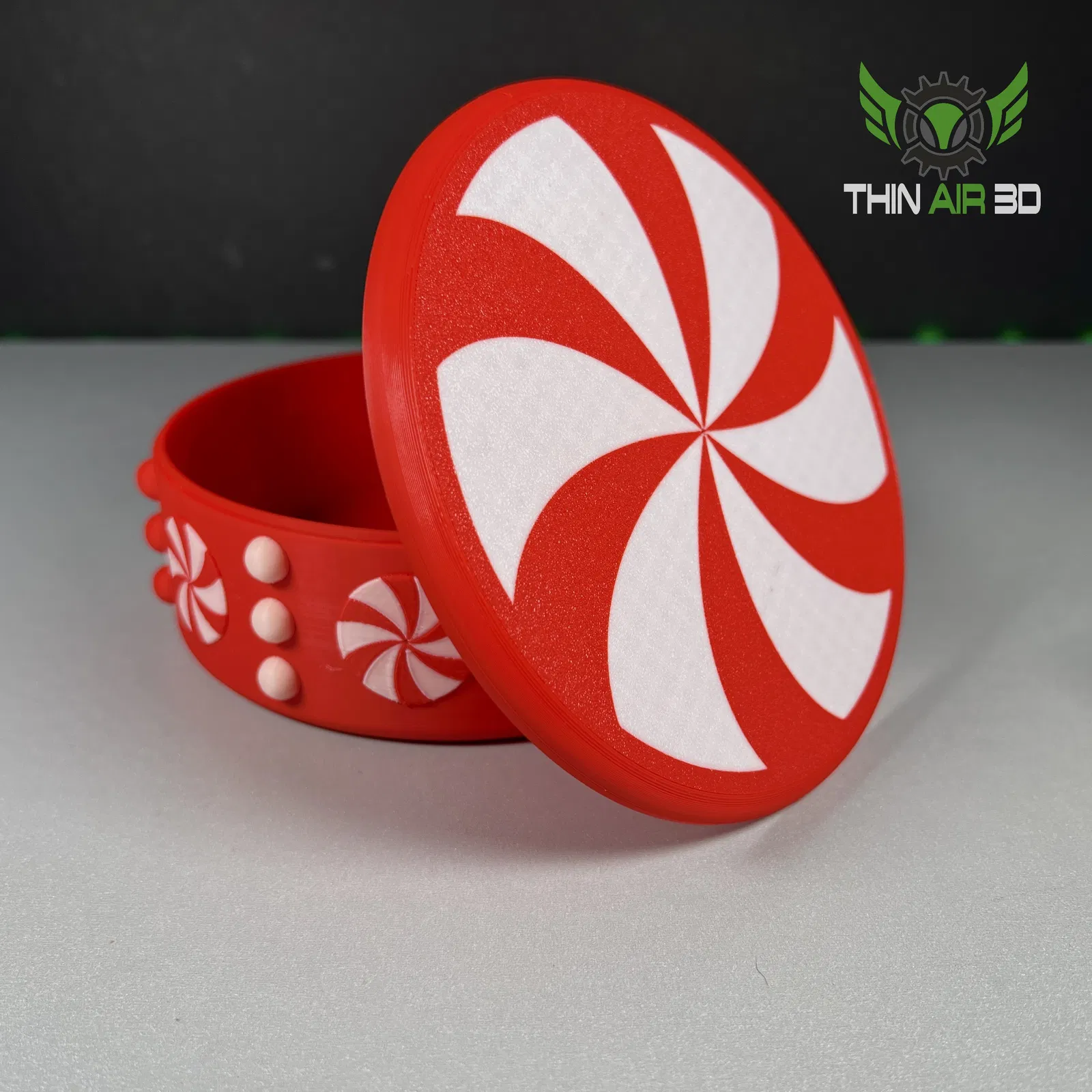 Xin giới thiệu Tô Kẹo Bạc Hà! Chiếc tô này không chỉ để đựng kẹo mà còn có nắp xoay độc đáo, lấy cảm hứng từ bánh xe thôi miên. Có kèm file .3mf in đa sắc. Lưu ý: giấy phép phi thương mại. Xem Patreon để có quyền bán thương mại.