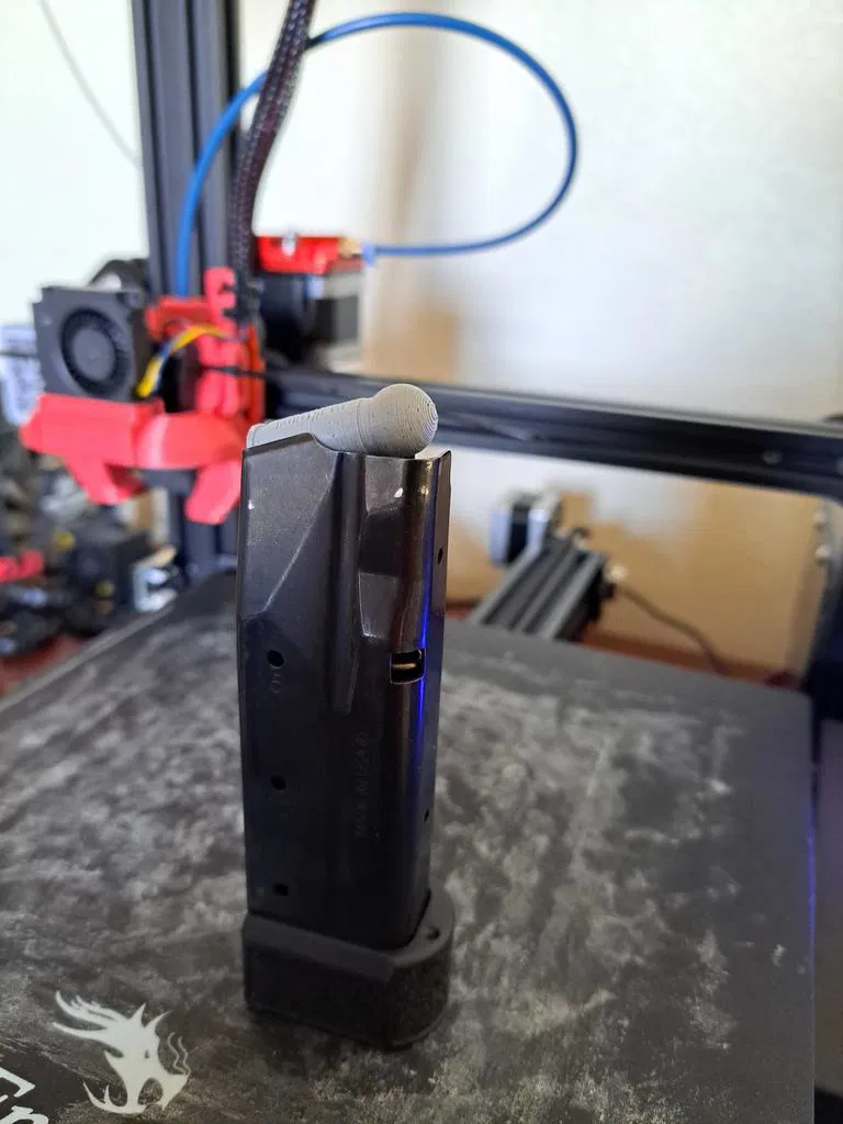 Hồi tui tìm mấy cái mẫu snap cap á, tui thấy có cái mẫu tập luyện cho trường hợp đạn bị kẹt (double feed) mà tui thích cái ý tưởng đó lắm, mà làm ra nó hông có được ưng ý cho lắm nên tui tự làm cái của tui. Mấy cái này nó nhét vô giữa mấy viên đạn thường hoặc mấy viên snap cap khác được, chứ không có nhét liên tục được đâu nha. Ban đầu tui thiết kế với test thử trên cây Sig P365XL, nên anh em cẩn thận khi thử với mấy khẩu súng khác.