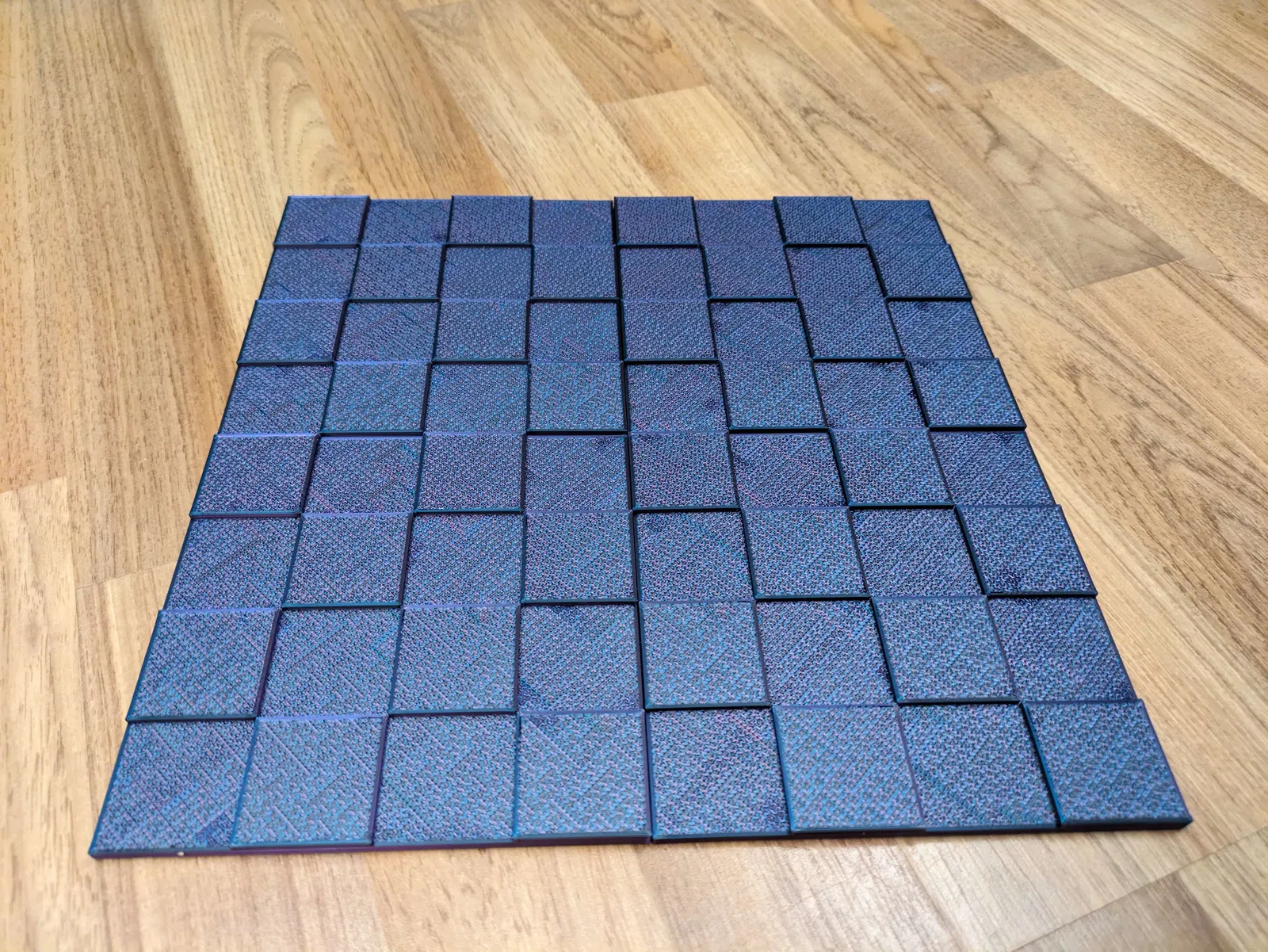 Bàn cờ vua với các ô vuông có kích thước 3.5 cm, phù hợp cho những ai yêu thích cờ vua và muốn có một bàn cờ độc đáo, dễ dàng mang đi hoặc cất giữ.