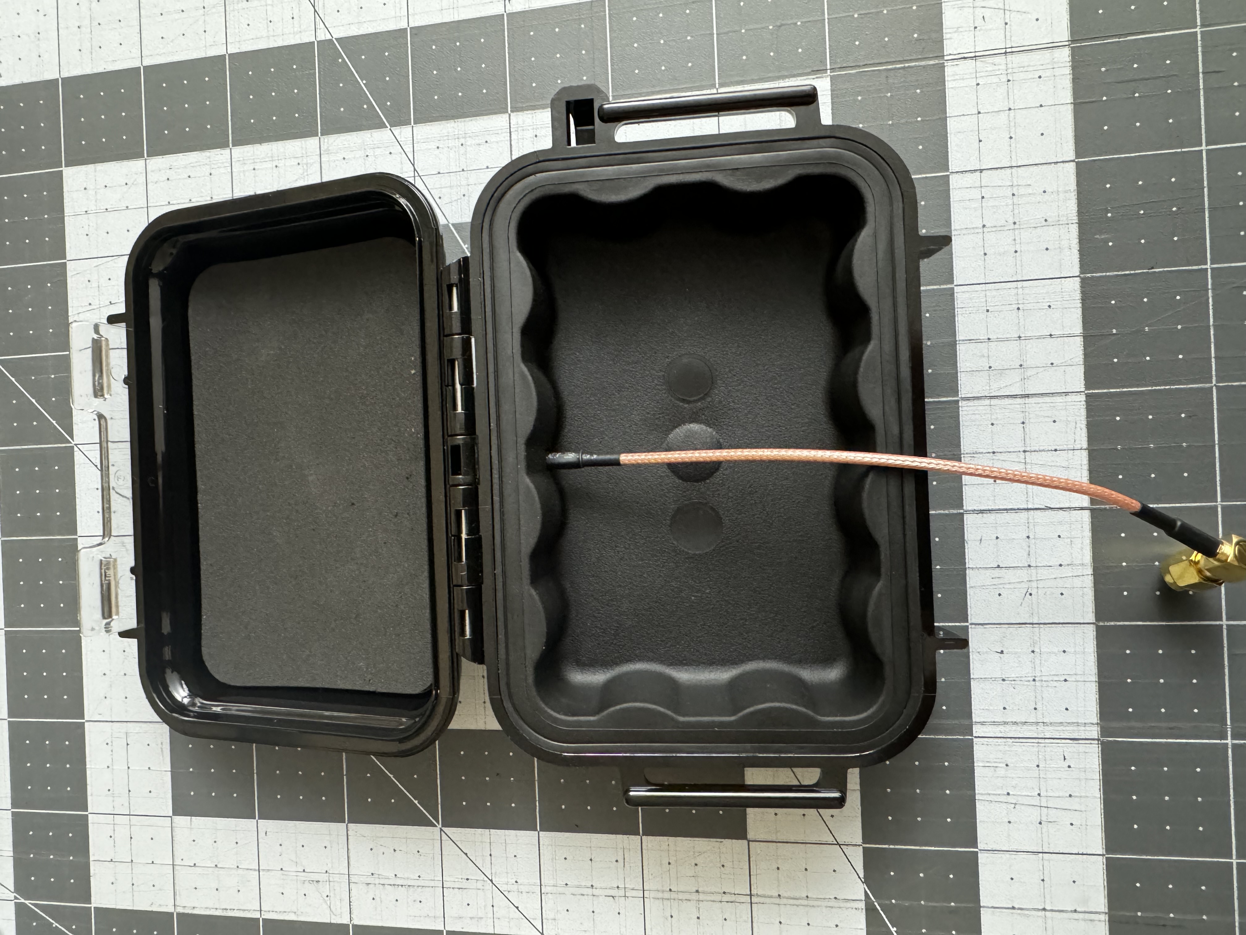 Cái vỏ đơn giản này để giữ Lily T-beam trong hộp Pelican 1010, giúp nó được bảo vệ an toàn. Anh em cần chuẩn bị hộp Pelican, mấy con vít với dây ăng-ten SMA là có thể làm được liền.