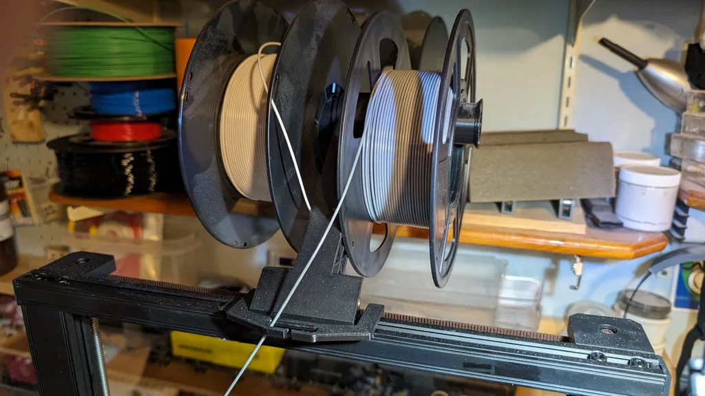 Không xài cảm biến dây tóc trên Ender 3 S1, người dùng này đã tạo một đế giữ dây tóc ở trên, gài hai bên chỗ giữ cuộn dây, cho phép dễ dàng sử dụng một trong hai cuộn.