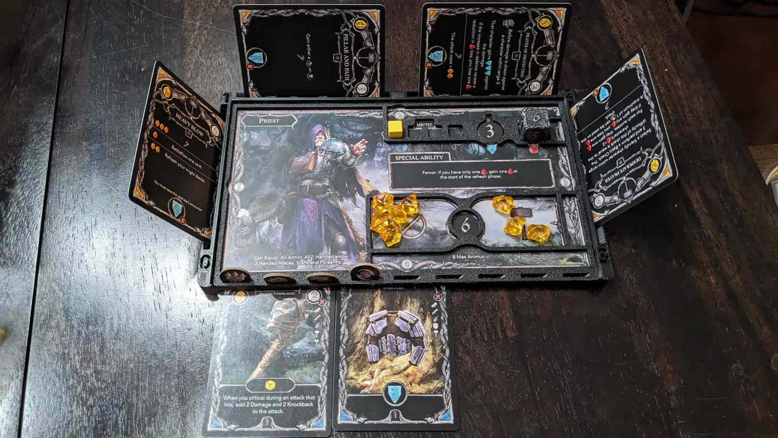 Phiên bản remix cho bảng điều khiển Oathsworn, có khe cắm token và giữ luôn cả overlay nhân vật bên trong. Thiết kế này giúp tiết kiệm filament và cho phép nhét thẻ bài bên dưới, giữ cho trải nghiệm chơi game thêm phần gọn gàng.
