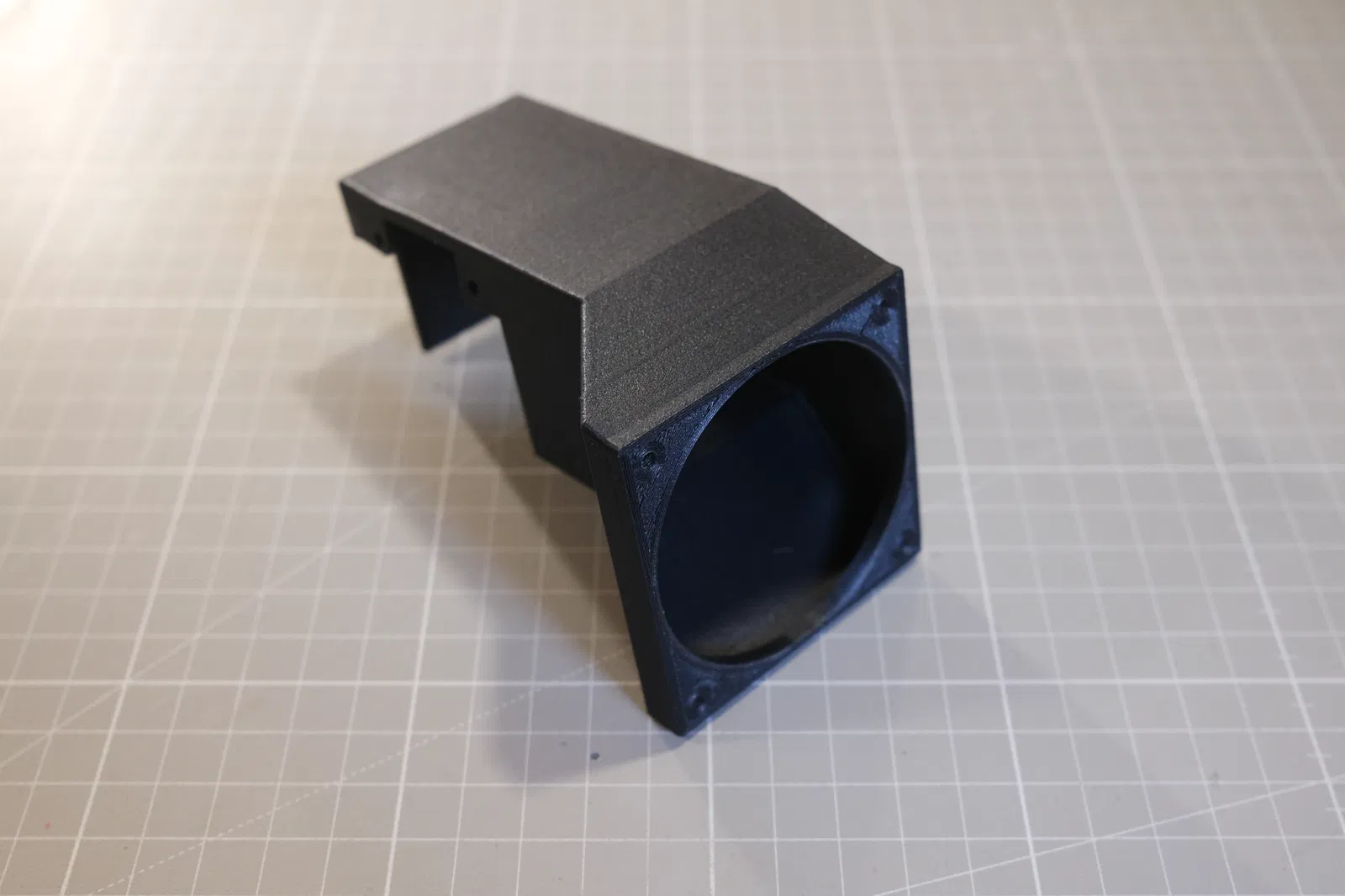 Chiếc model mình thiết kế ra là để làm mát tốt hơn cho motor stepper trục Y của máy Ender 3 S1 nha. Motor stepper được làm mát tối ưu với quạt 60mm được gắn bằng ốc M3x16mm (4 con). Bộ phận này gồm 2 phần: phần vỏ và tấm che.