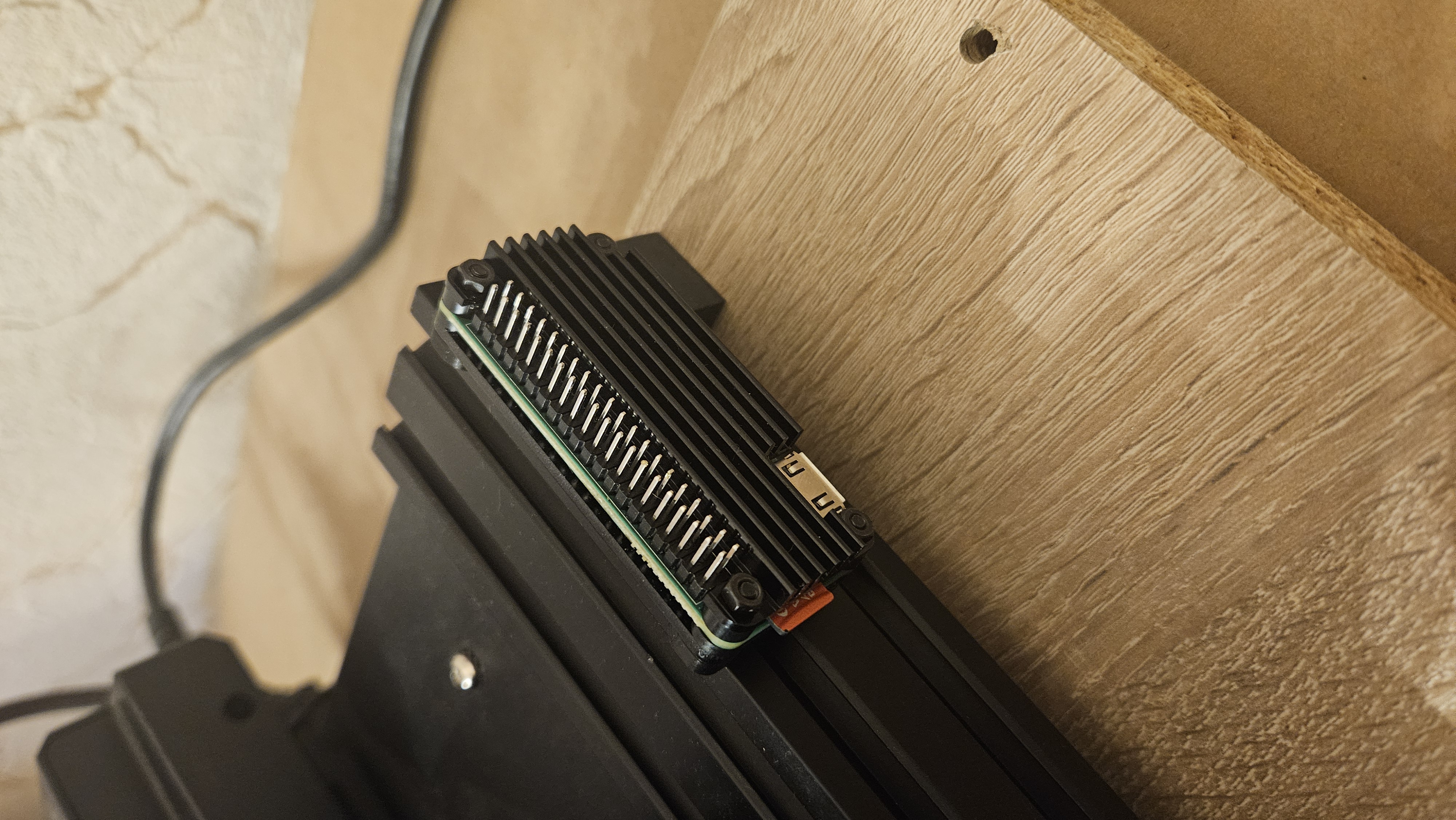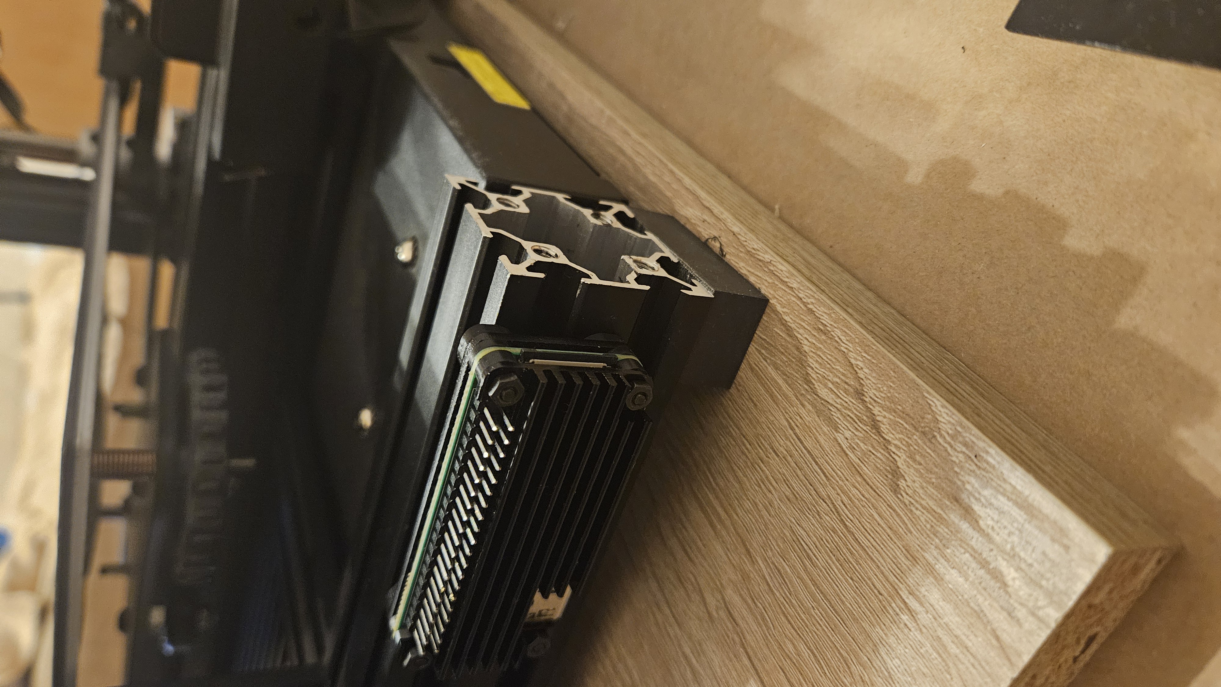 Giá đỡ trượt cho raspberry pi zero 2w có tản nhiệt kim loại để gắn vào thanh profile của Ender 3 v2. Định chạy camera raspberry với cáp ngắn nên quyết định dùng chỗ phía sau màn hình LCD. Vừa vặn và giữ chắc chắn.