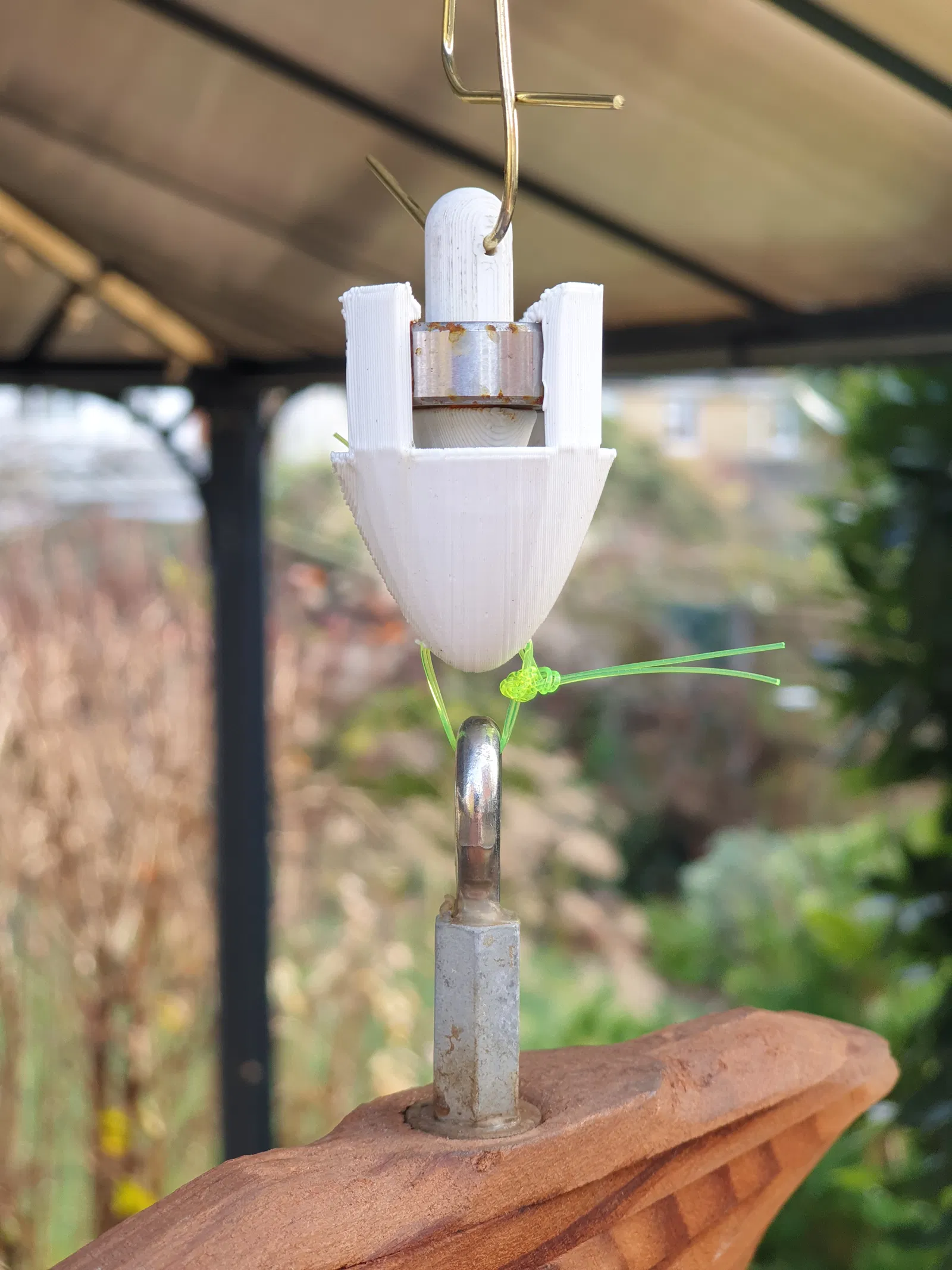 Tui cần một cái khớp xoay để treo đồ trang trí ngoài vườn. Tìm hoài không có nên tui tự làm…