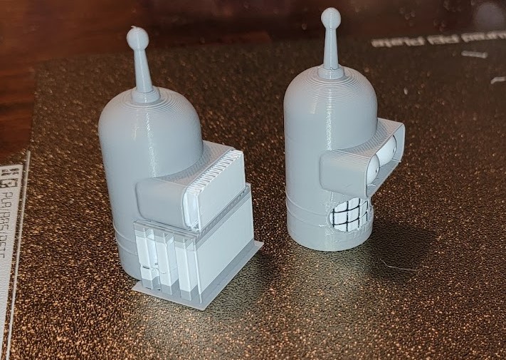 Mô hình đầu Bender Bending Rodriguez được in bằng công nghệ đa sắc. Người dùng chia sẻ kinh nghiệm in và thời gian hoàn thành bản in chi tiết.