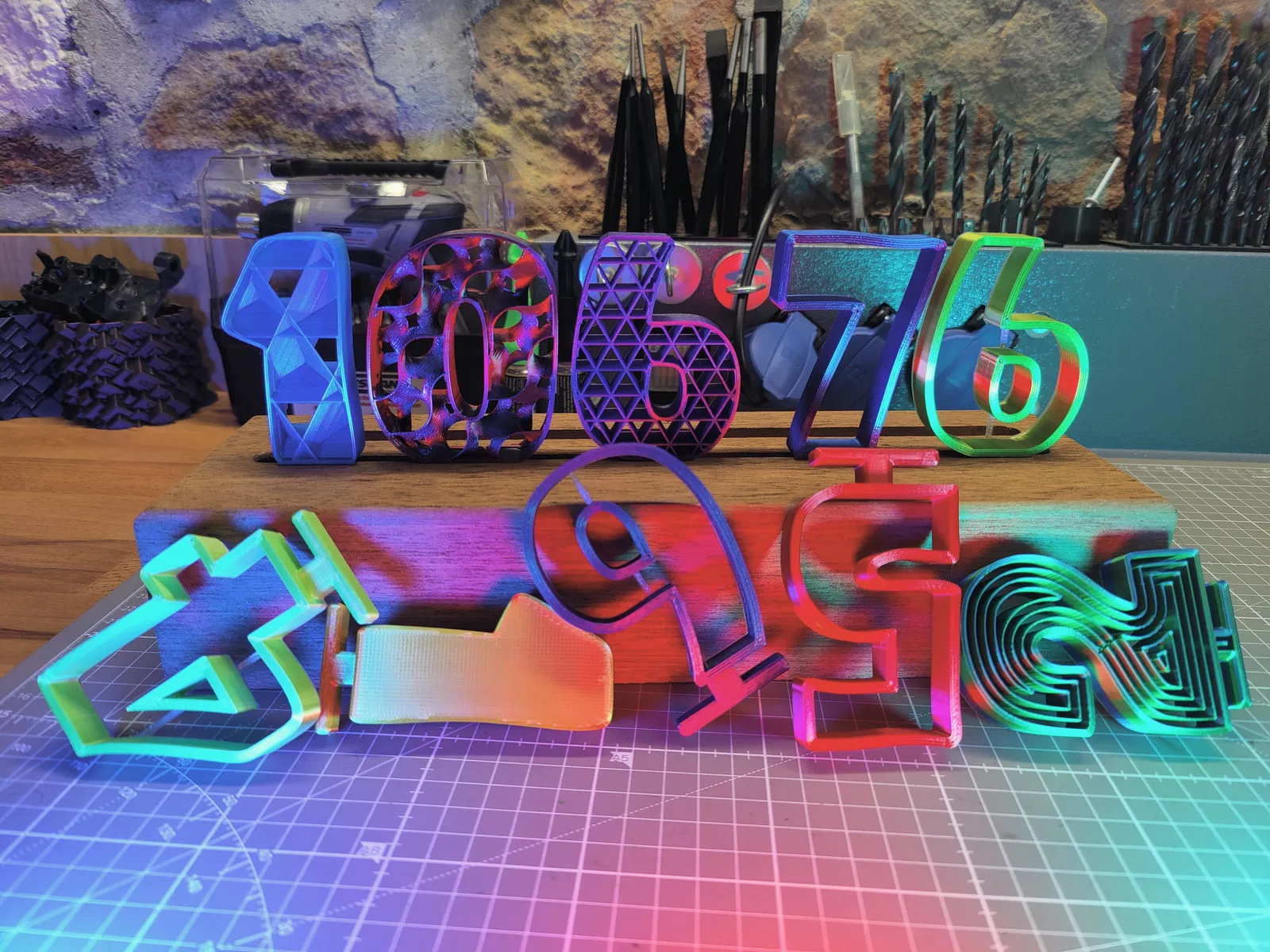 Tụi mình đã làm một bộ đếm số siêu đẹp cho kênh YouTube, có thể đếm đến 99999! Có cả bản đế gỗ và đế in 3D, cùng với các số bản thường và bản rỗng. Hướng dẫn chi tiết cách in và tùy chỉnh hiệu ứng với infill và màu sắc để tạo ra bộ đếm độc đáo của riêng bạn.