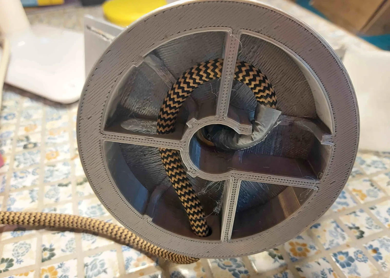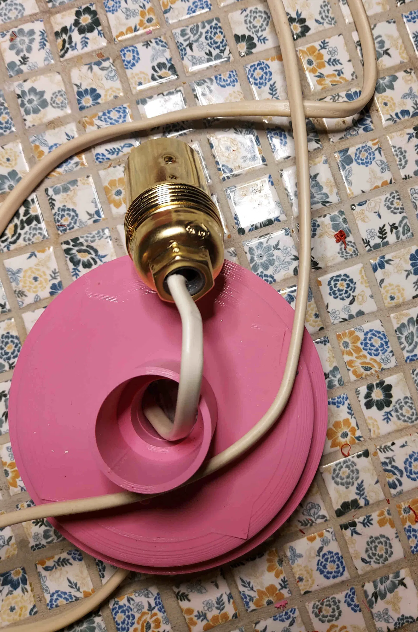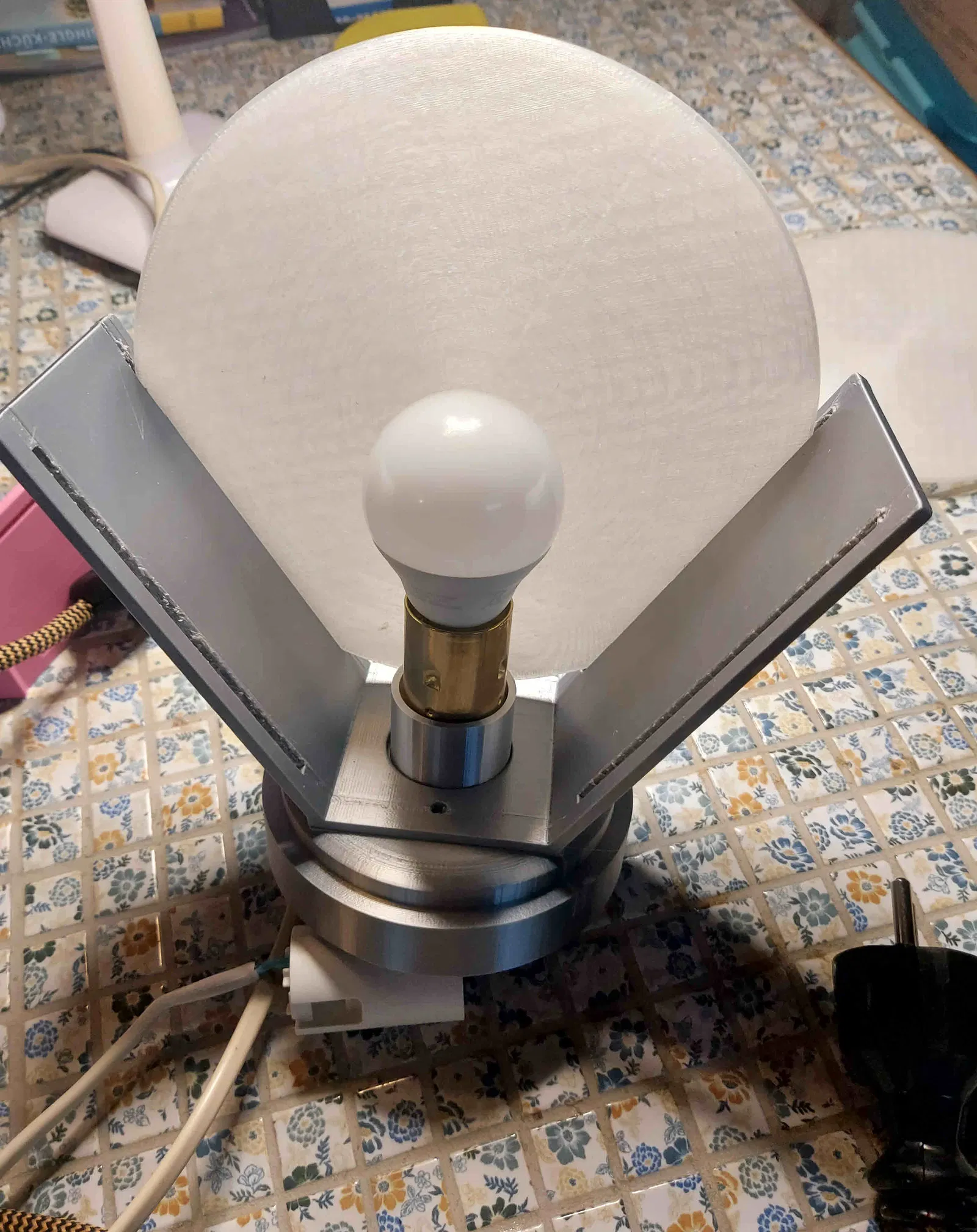 Bạn cần dây điện và đui đèn E14. Lắp ráp đơn giản. In phần chụp đèn tròn 2 lần. Thử nghiệm với infill để tạo hiệu ứng đẹp khi bật đèn. Mình đã dùng hình ngôi sao. Không cần keo.