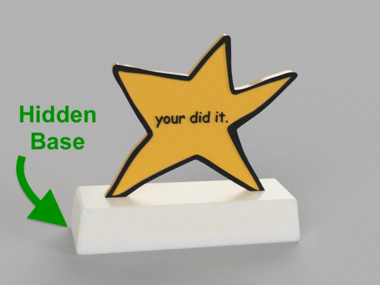 Chiếc cúp hình ngôi sao ngộ nghĩnh, dễ tùy chỉnh này là lựa chọn hoàn hảo cho các giải thưởng vui, giải thưởng trông như được vẽ bởi trẻ con. Dễ dàng thêm chữ vào ngôi sao hoặc đế cúp bằng công cụ slicer. Hướng dẫn in chi tiết và các lựa chọn đế sáng tạo.