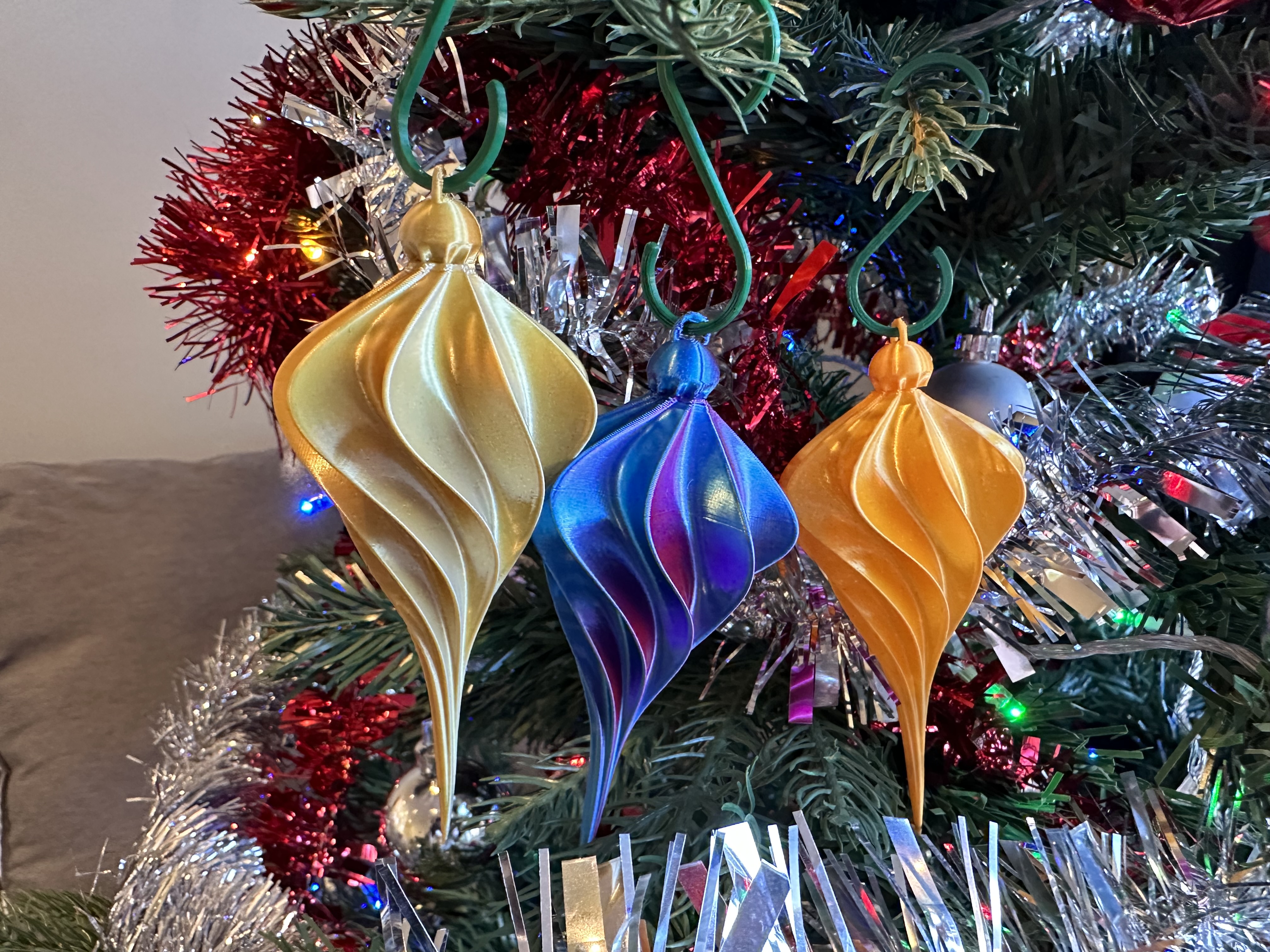 Tạo điểm nhấn cho cây thông nhà bạn với món đồ trang trí hình Cửu Giác độc đáo, kích thước vừa vặn 110 x 47mm. In nhanh bằng chế độ vase/spiral, không cần support. Chất liệu PLA hai màu hoặc một màu đều đẹp. Biến tấu thêm với sơn, kim tuyến để thêm phần lung linh!