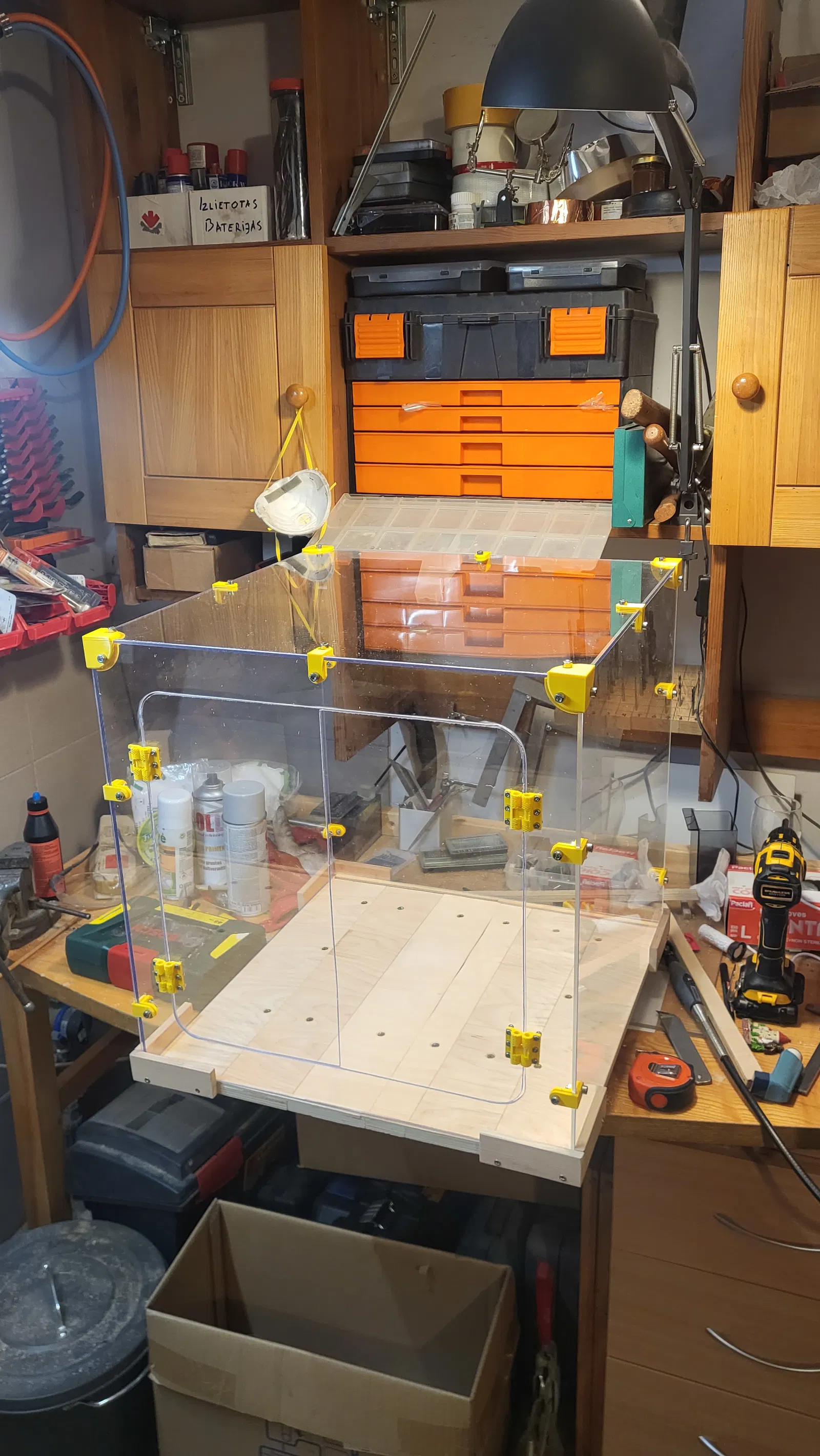 Bộ phận DIY cho thùng máy in 3D, gồm các loại pát góc, pát cạnh, tay nắm cửa dùng nam châm, tương thích với mica 4mm. Có thể làm đế gỗ hoặc không. Hoàn hảo cho Prusa Mini.