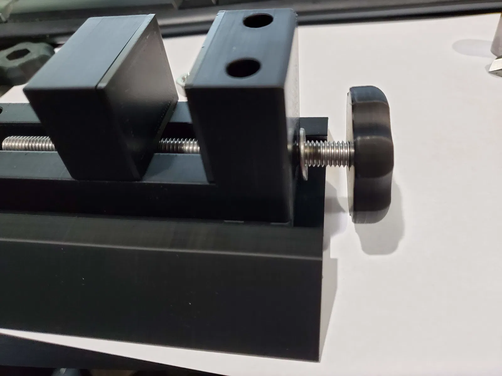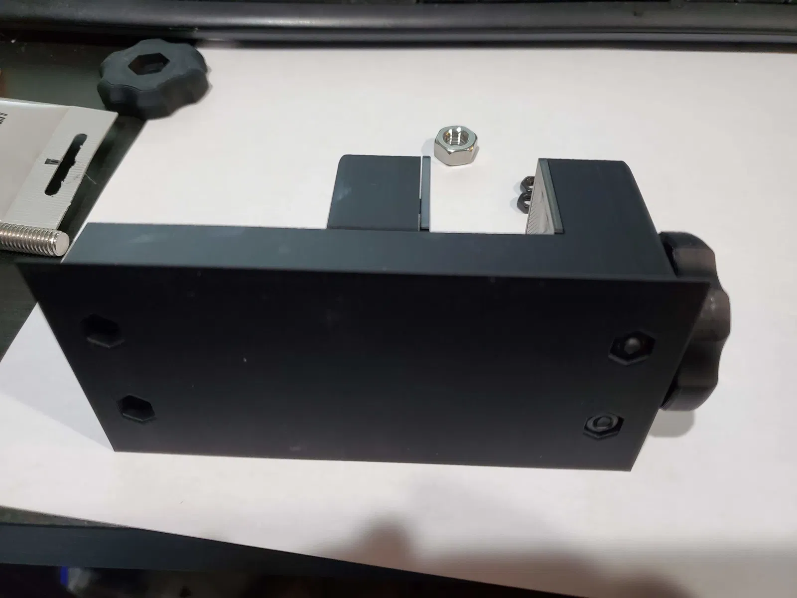 - Độ khít của kẹp và đế trượt là chặt, và cố ý như vậy. Có thể cần chà nhám một chút, nhưng với sự trợ giúp của bu lông và đai ốc, tôi đã có thể làm cho nó trơn tru mà không cần.