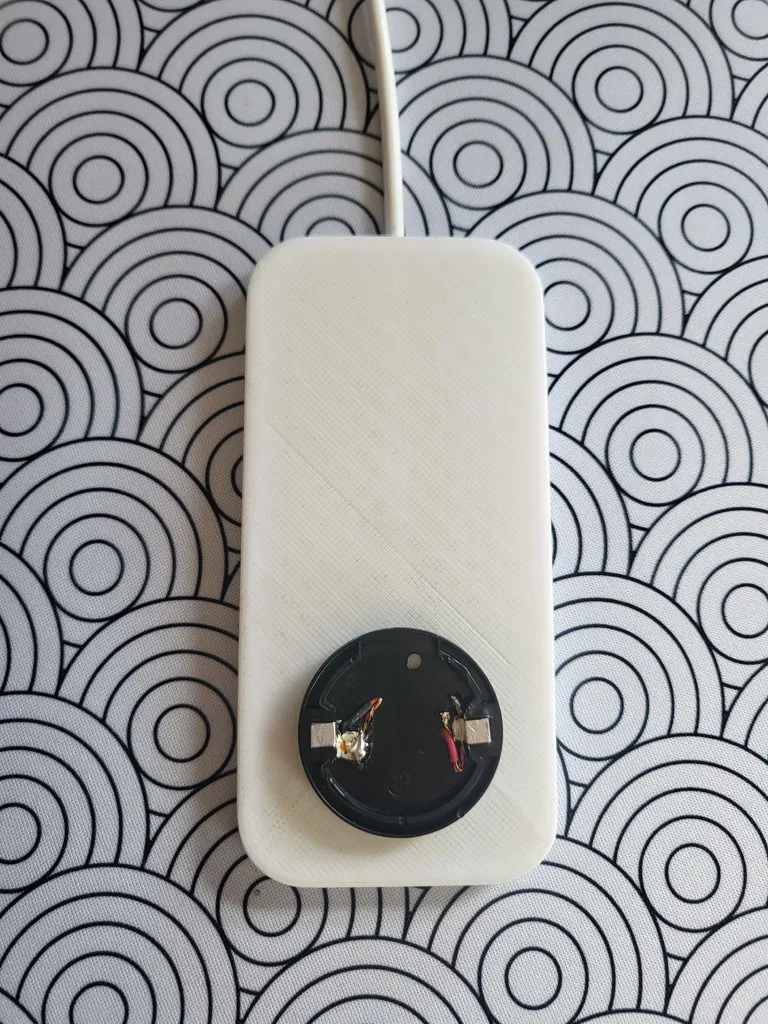 Dán miếng tròn có thể tháo rời đi kèm chuột vào đế. Khoan hai lỗ tương ứng, sau đó hàn dây vào hai nam châm.
