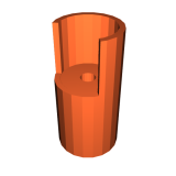Lỗ khoan ở giữa chủ yếu là để tạo các bức tường rắn chắc ở trung tâm bản in nhằm chịu trọng lượng của máy in. Máy may có ren trên chốt mà cái này gắn vào, nhưng tôi không có con ốc nào vừa với ren đó nên tôi không khoét lỗ chìm ở đáy vì lỗ chìm không được lấp đầy sẽ làm chân đế yếu hơn và khó in hơn, ít tiếp xúc với bàn in hơn.