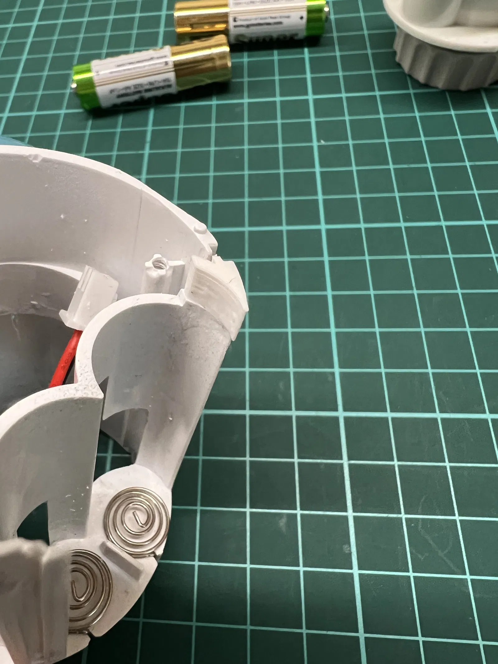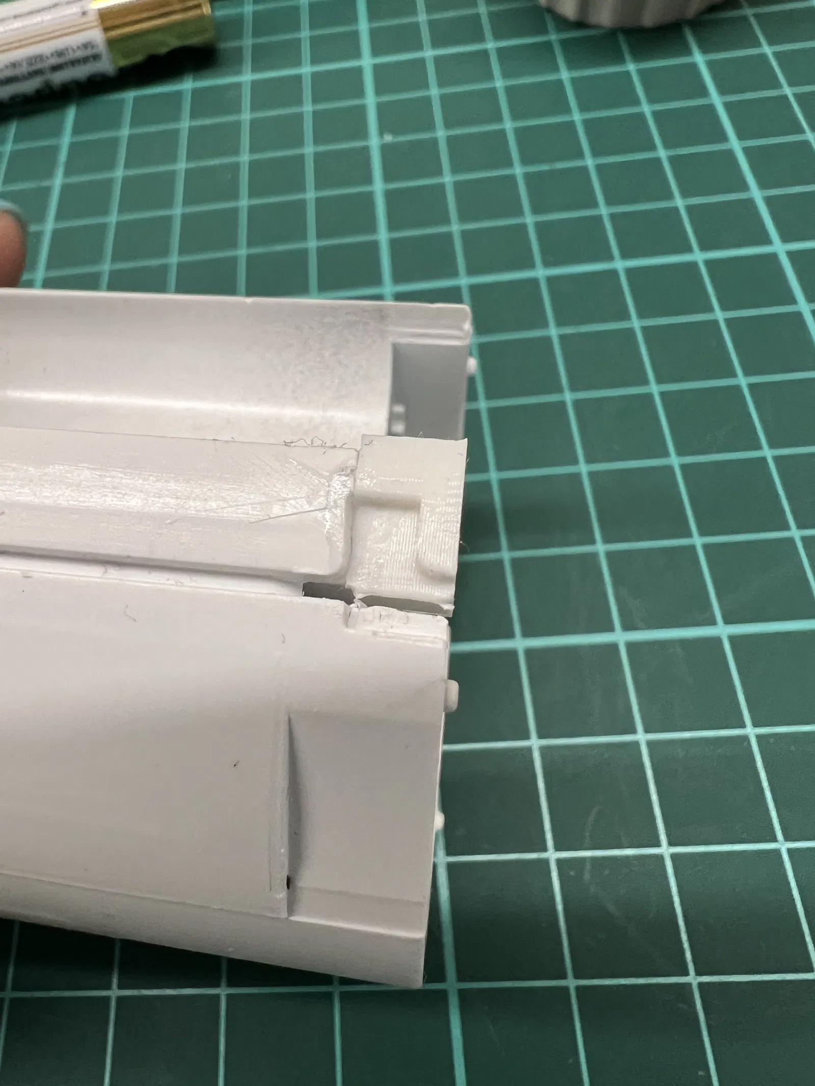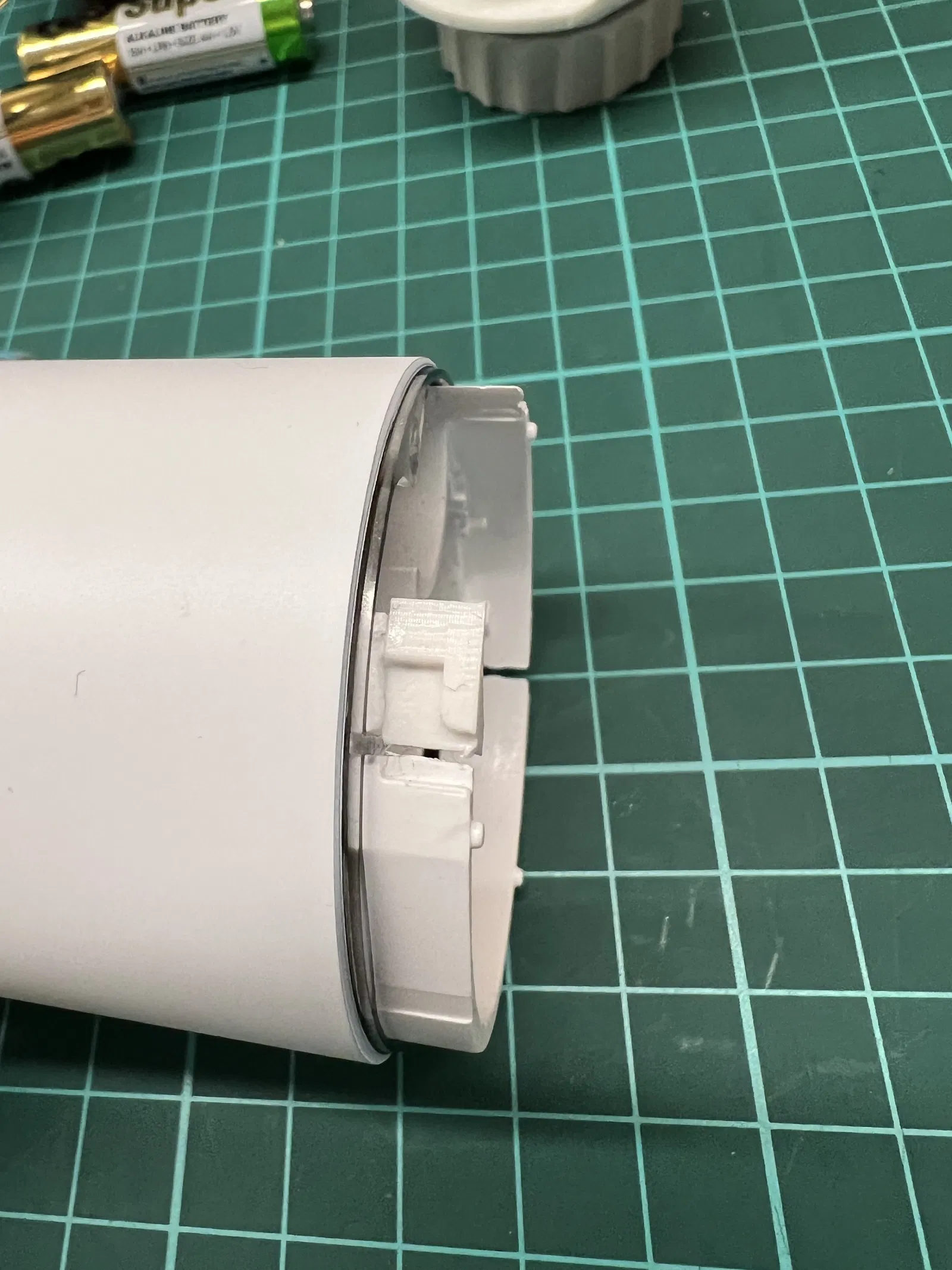 Một trong những cái lẫy giữ nắp ngăn chứa pin bị gãy nên tôi đã làm phẳng bề mặt bị gãy, khoan vài lỗ nhỏ để căn chỉnh và tăng độ bám dính, in bộ phận bị thiếu và gắn nó lại bằng keo siêu dính.