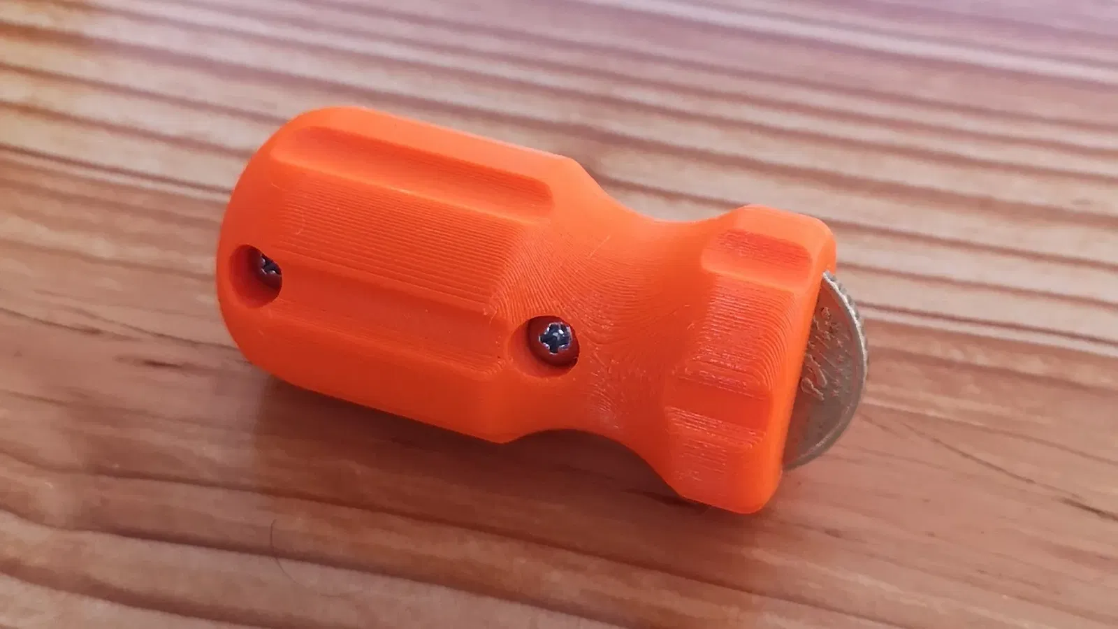 Một chiếc tua vít ngắn có thể giữ một đồng xu. Hoàn hảo cho tất cả các thiết bị điện tử tiêu dùng mà một chiếc tua vít bình thường không phù hợp.