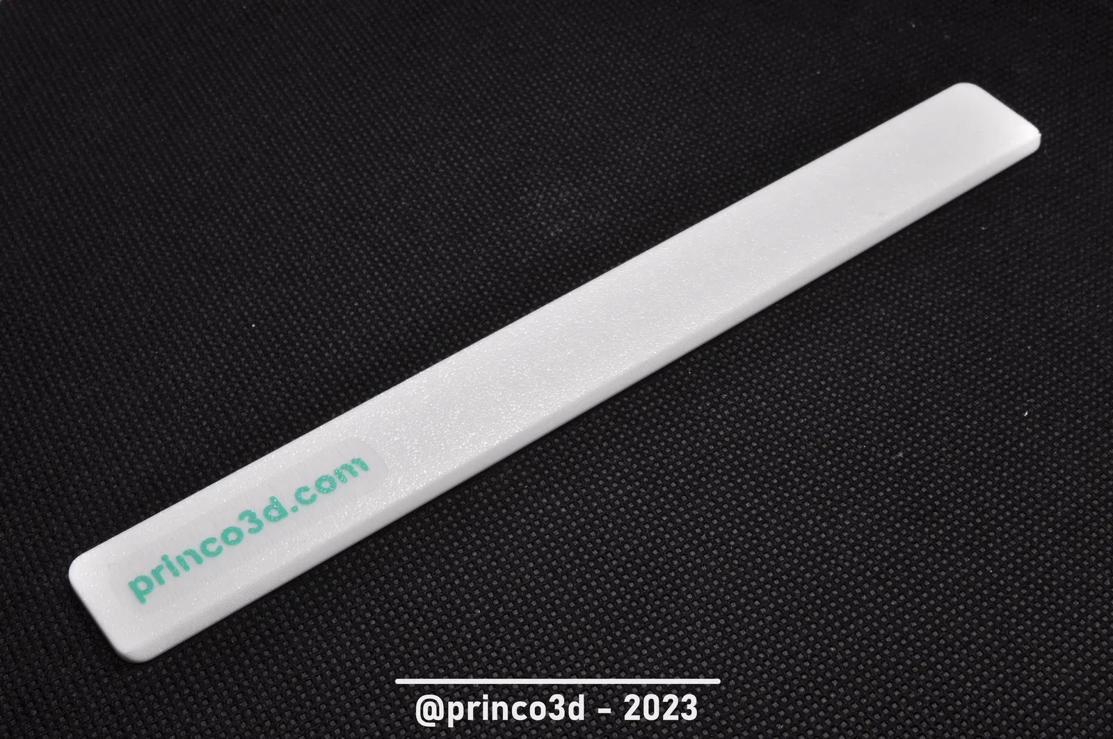 Thiết kế thước kẻ văn phòng có chiều dài đo được 17 cm. Có thể in bằng một màu, thay đổi sợi nhựa thủ công hoặc sử dụng hệ thống đa sợi (AMS, MMU, v.v.) để trang trí bằng các màu sắc mong muốn.