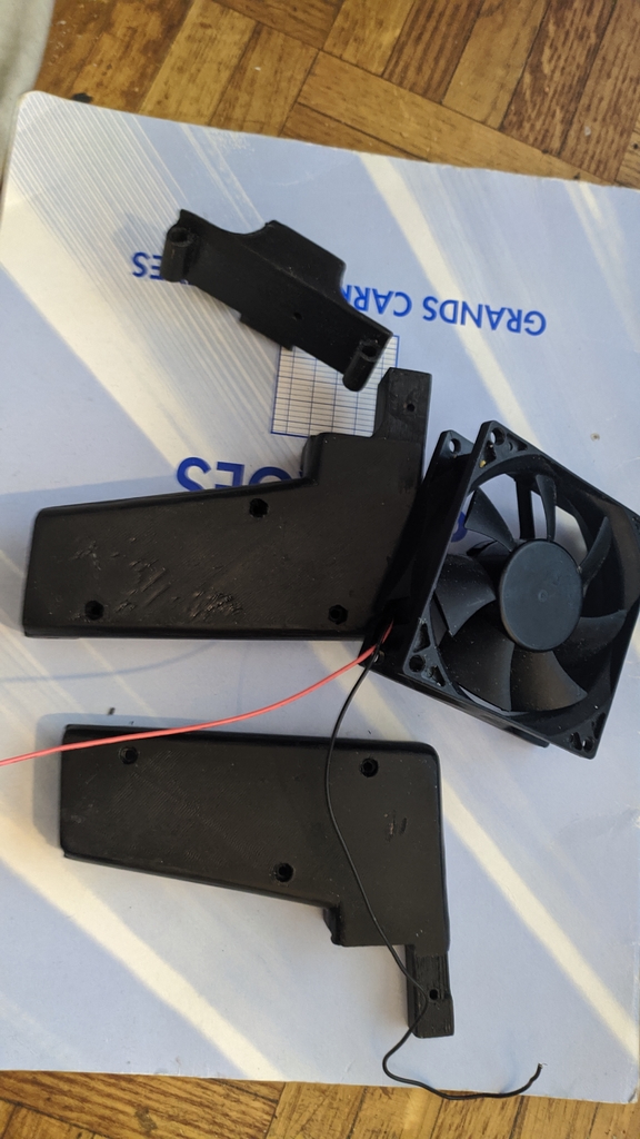 Nhớ luồn dây quạt qua mấy cái lỗ trên vỏ (hai mảnh đó) trước khi hàn dây nha