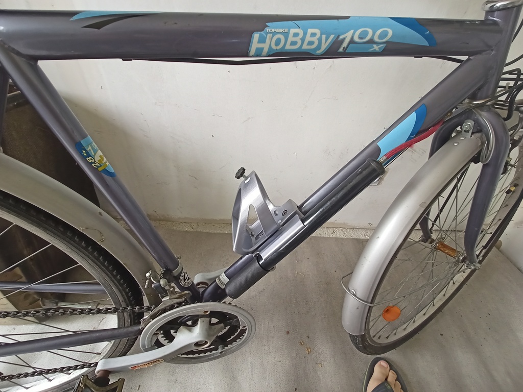 2 con vít M5 (khoảng 15mm) + 2 con đai ốc M5 nếu mấy bà muốn gắn thêm đế giữ cho bơm xe đạp.