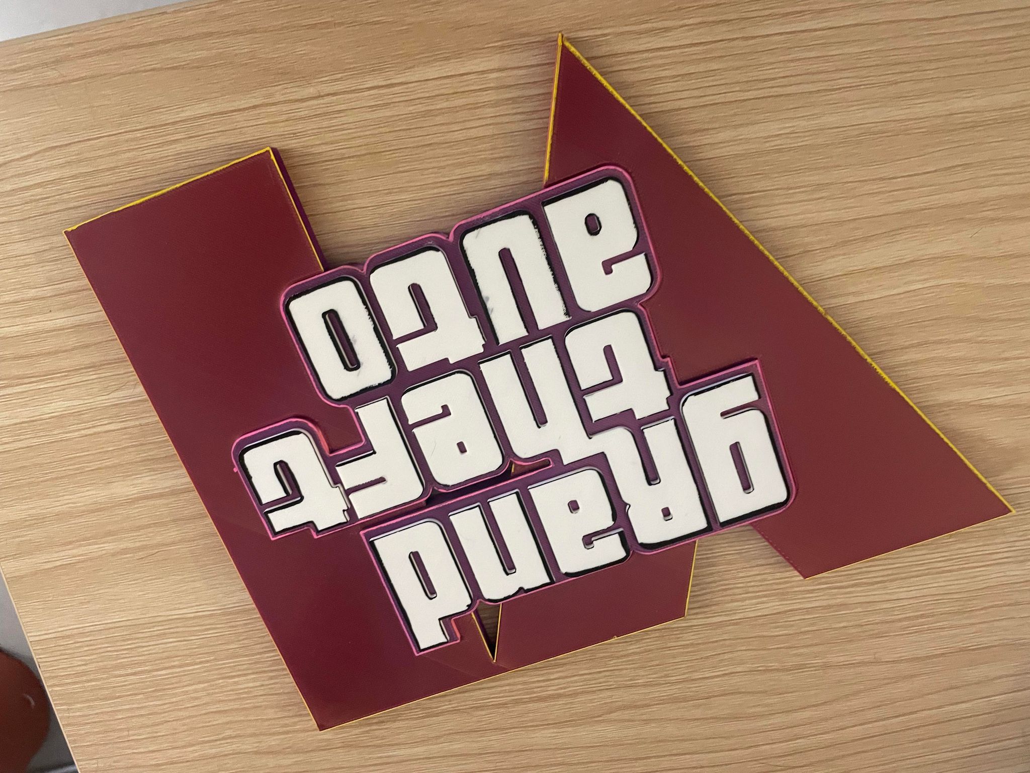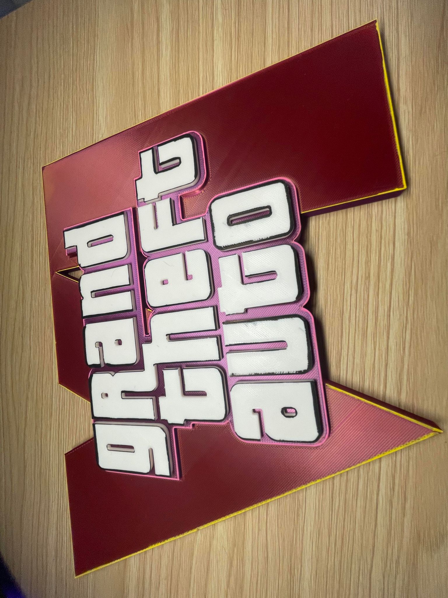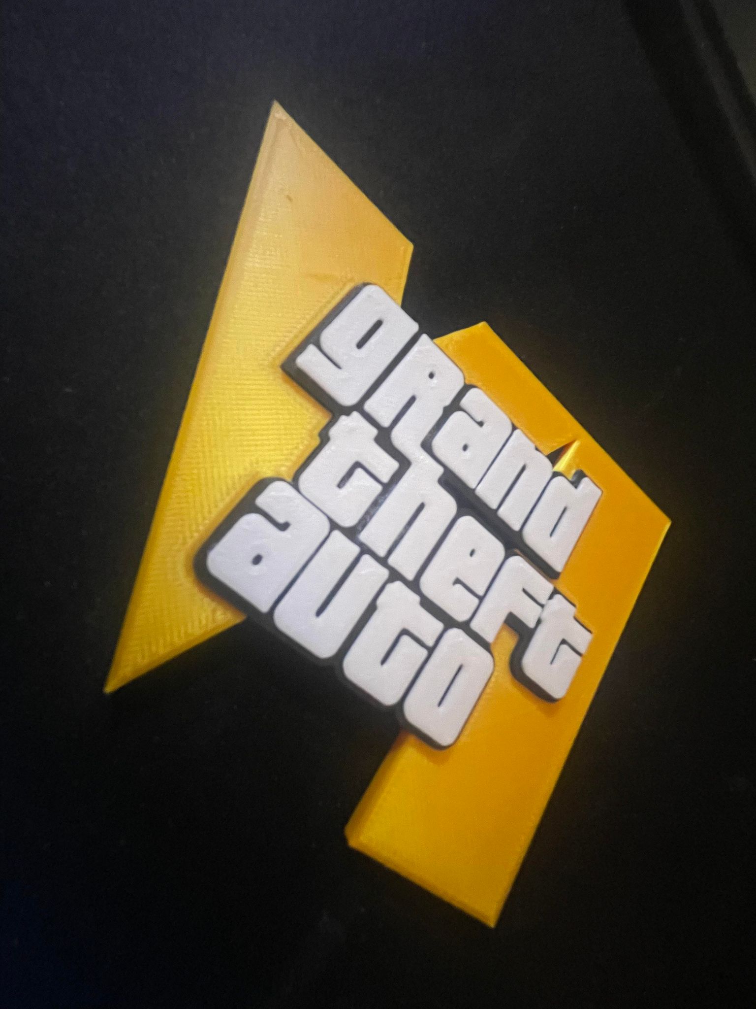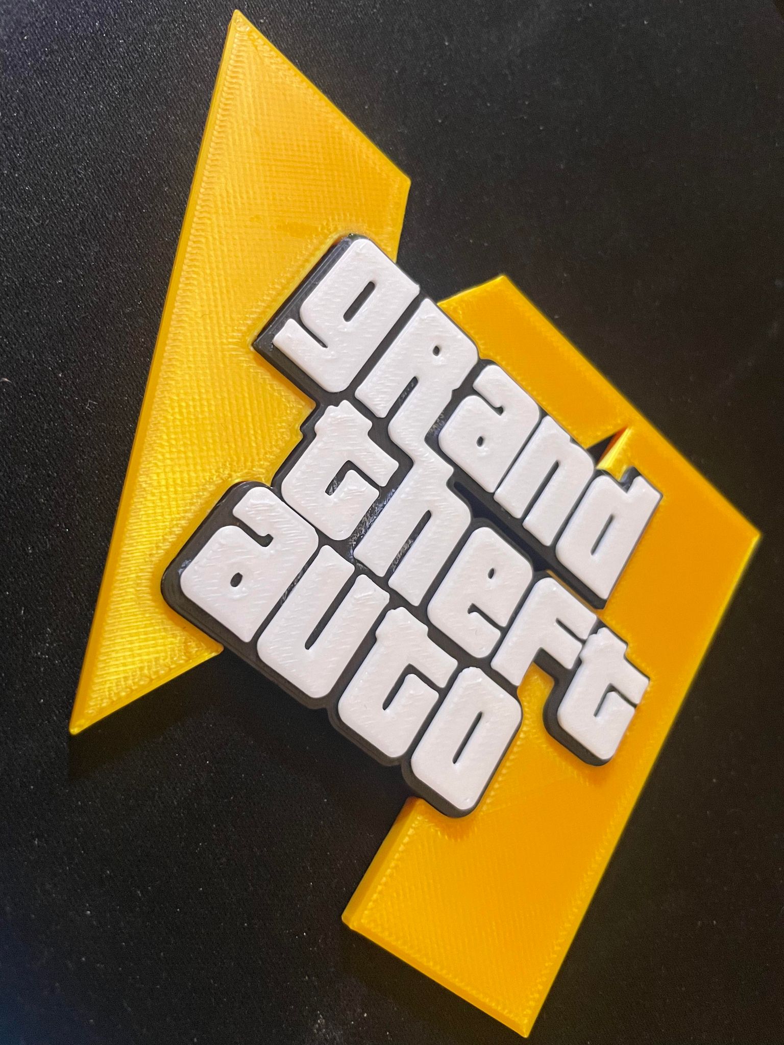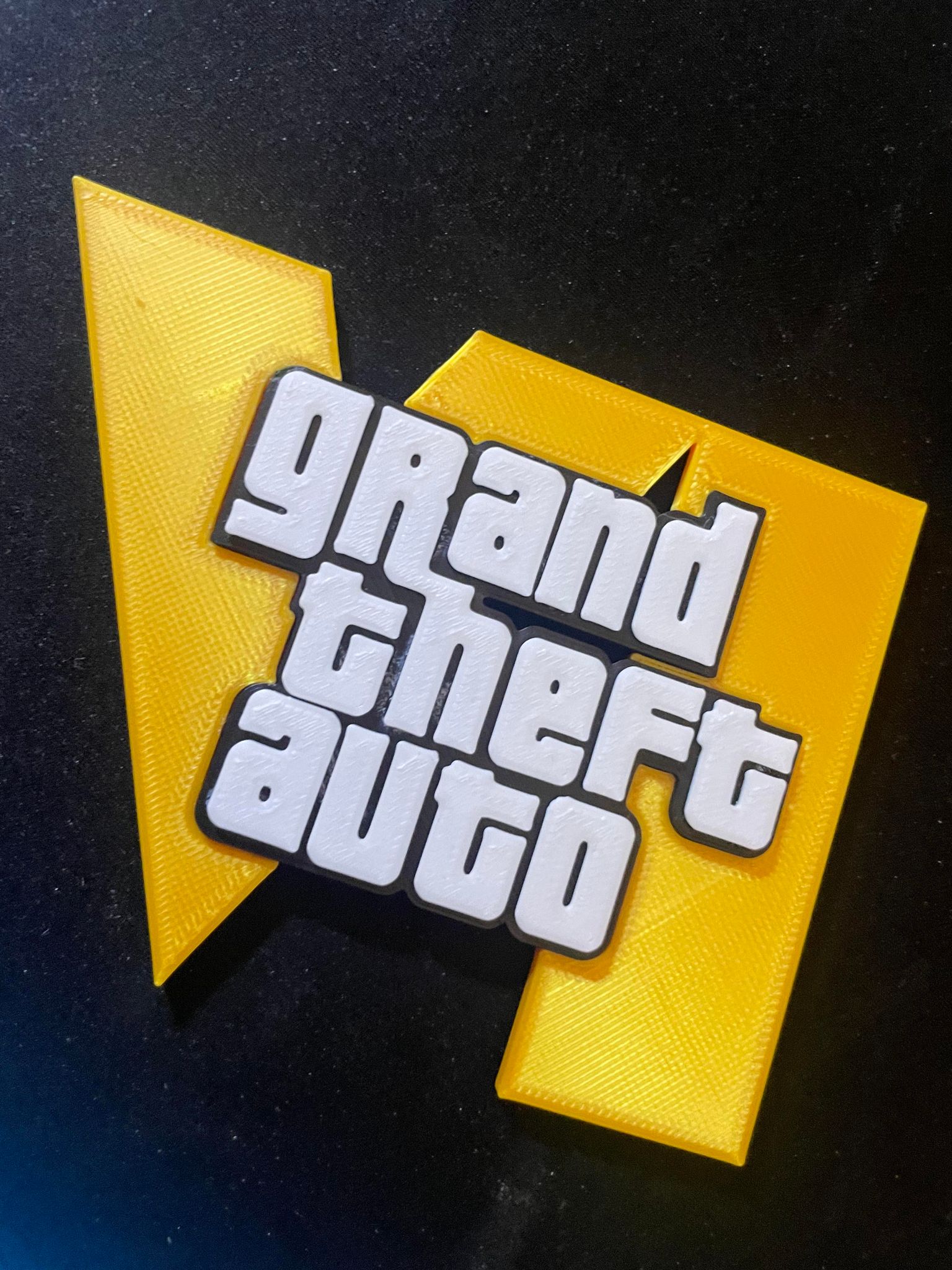 Mô hình logo GTA 6, chi tiết và sắc nét cho bạn in 3D. Hoàn hảo cho fan hâm mộ dòng game Grand Theft Auto.