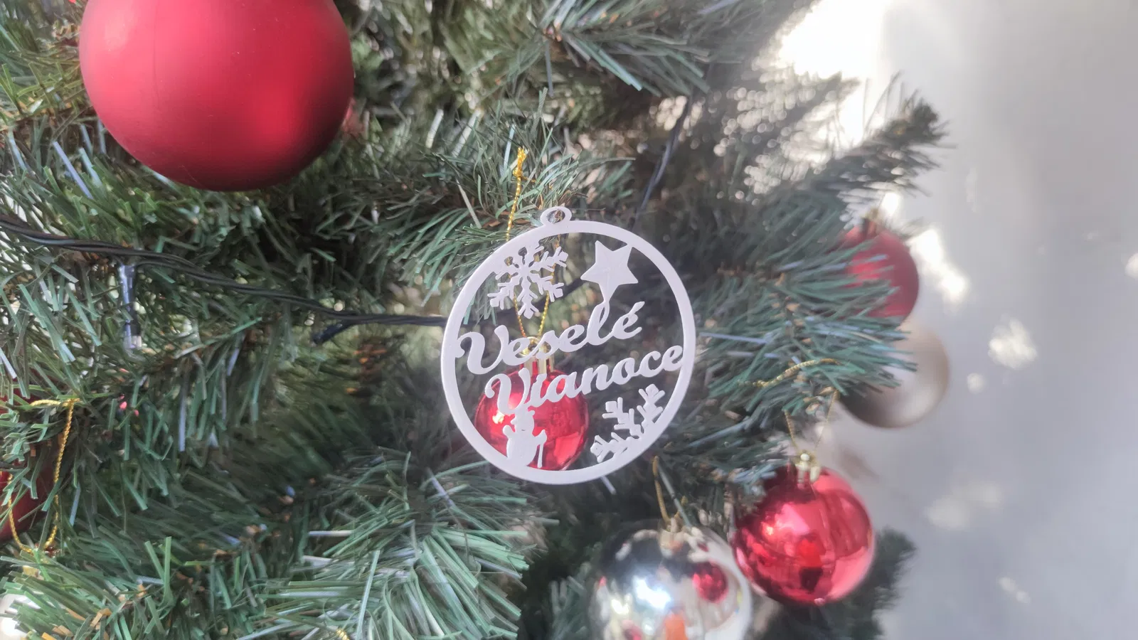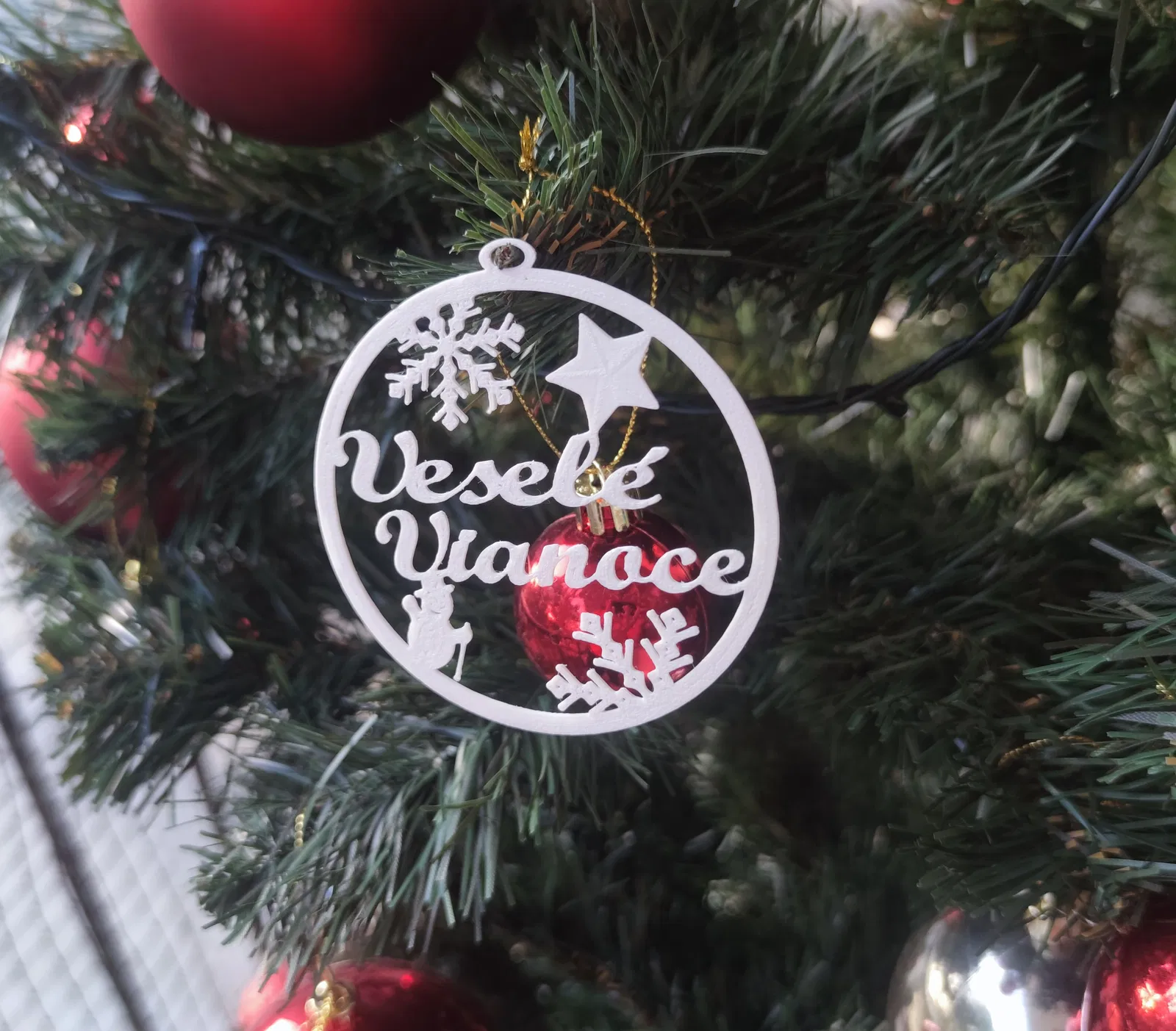 Trang trí để treo lên cây thông Noel với dòng chữ “Chúc Mừng Giáng Sinh” (phiên bản SK). Làm từ PLA trắng, đầu phun 0.4mm, nhiệt độ 205/55°C, lớp 0.20mm, ruột 100%, viền 2. Phiên bản CZ có tại link này nhé.