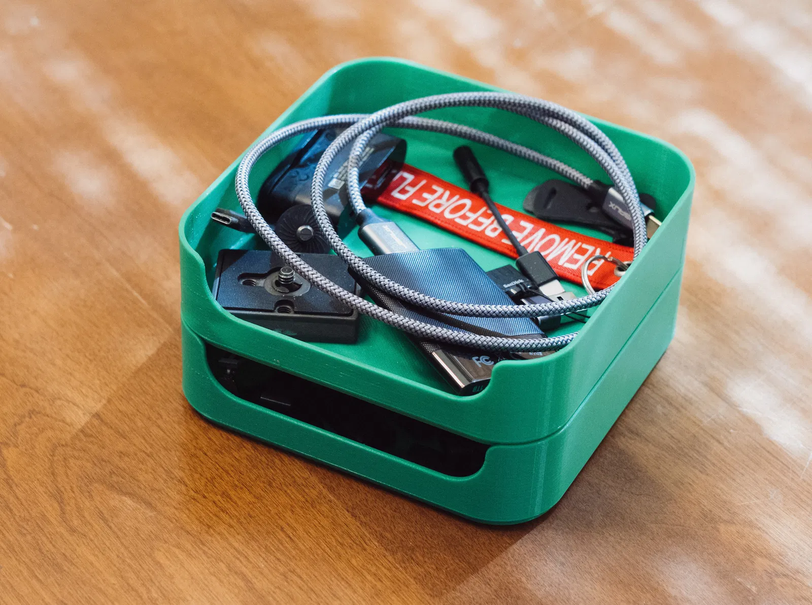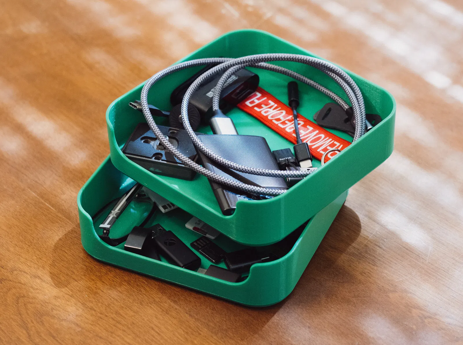 Nếu bạn giống tôi, bạn có một chiếc bàn lớn không có ngăn kéo, và không có cách nào dễ dàng để tập hợp tất cả các ổ đĩa nhỏ, bộ chuyển đổi và những thứ linh tinh, nhưng vẫn trong tầm tay. Tôi đã tạo ra hệ thống khay xếp chồng nhỏ này để giúp bạn việc đó. Vậy đó! Hy vọng nó cũng có ích cho bạn.