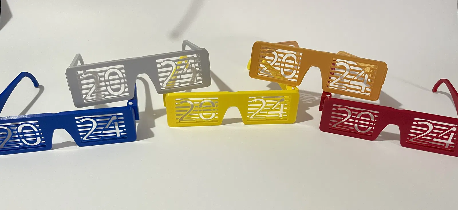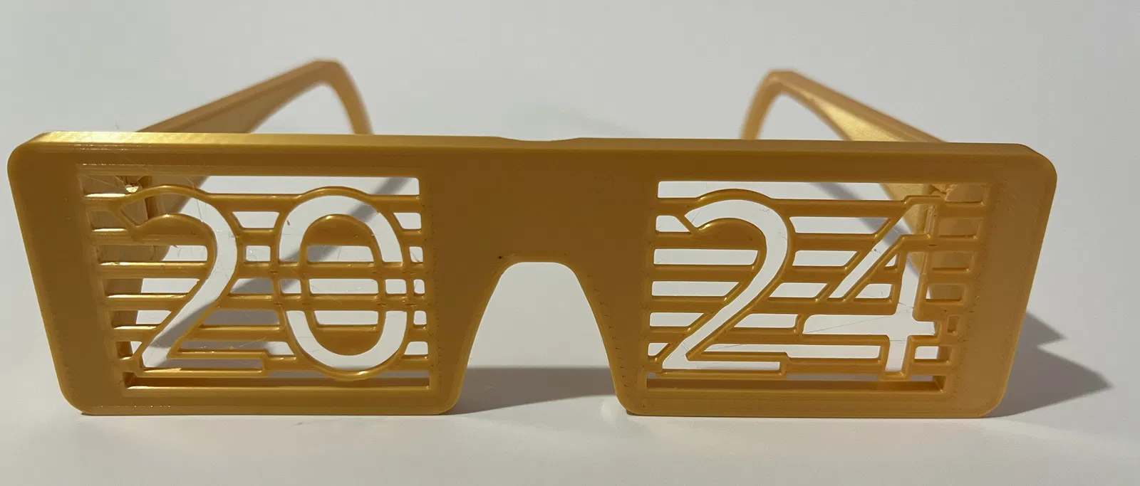 Kính này bạn có thể mang đến để làm bữa tiệc mừng năm mới thêm phần sôi động. Lưu ý là mình chỉ có mô hình cho phần gọng bên trái, bạn hãy mirror (lật đối xứng) trong slicer để tạo gọng bên phải nha. Mình thường in phần gọng dựng đứng trên cạnh trên, dùng một ít hỗ trợ cho phần kệ trên. Có thể in trên mặt phẳng lớn hơn mà không cần hỗ trợ, nhưng cách đó sẽ tạo áp lực lên độ bám dính của lớp in, nên hãy kiểm tra kỹ xem chúng có bị gãy khi dùng lực mạnh không nhé. Xem file g-code mình đã cắt lát sẵn bên dưới để bạn quyết định hướng in nào phù hợp nhất với mình. Phần mặt kính thì in trên mặt phẳng lớn.