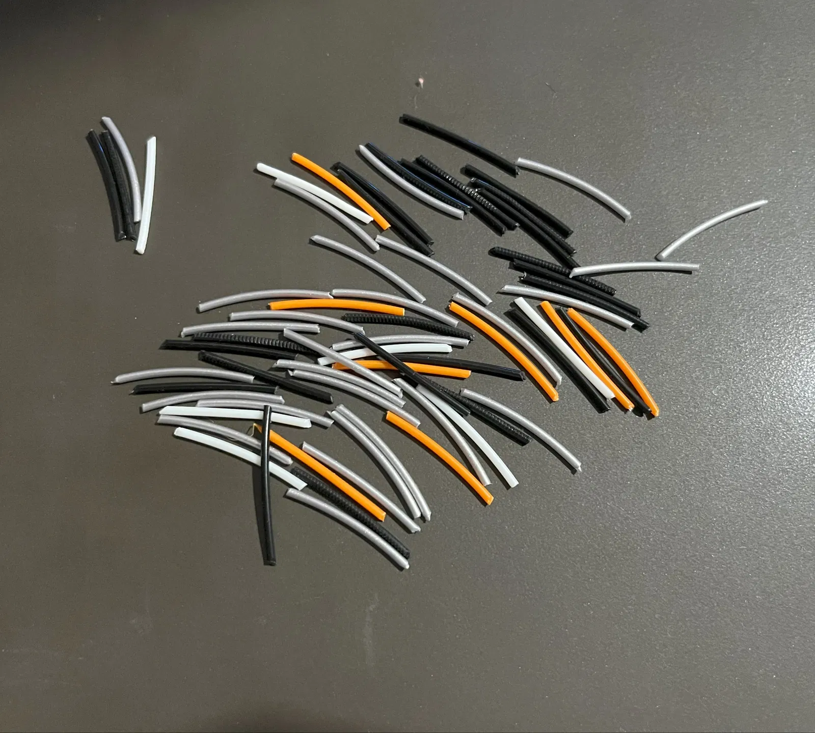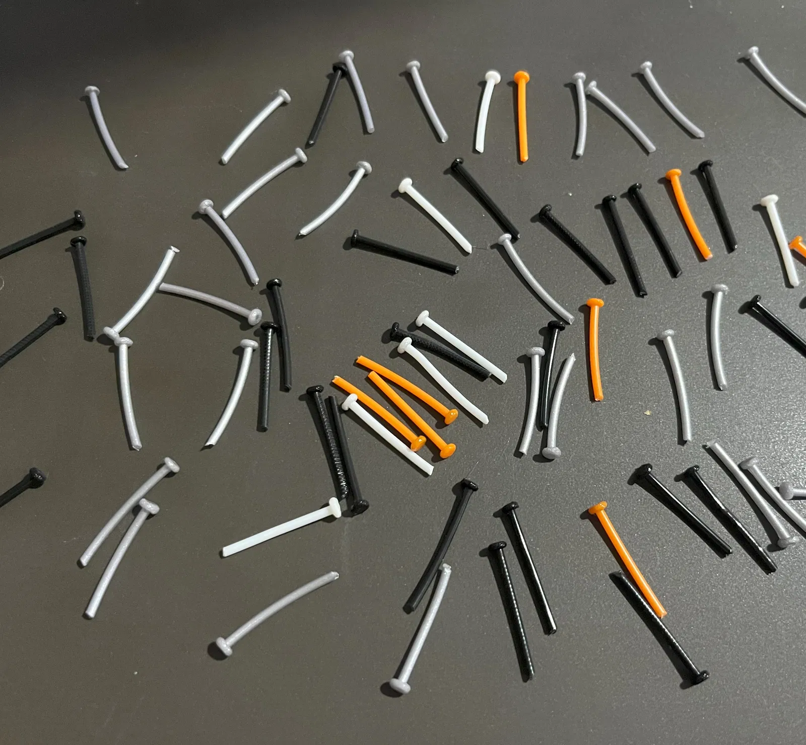 Đối với chốt để gắn gọng vào thì mình cắt một đoạn sợi nhựa (khoảng 26mm) và dùng mỏ hàn để tạo thành hai đầu chốt. Đây là cách tận dụng những đoạn sợi nhựa nhỏ ở cuối cuộn rất hay. (xem hình để biết chốt trông như thế nào nha.) Bạn cũng có thể xem thêm dụng cụ cắt chốt của mình để được hỗ trợ thêm /3d-model/cong-cu-cat-dinh-tan.