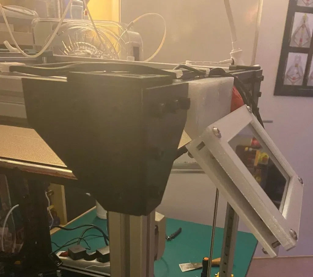 cho màn hình cảm ứng 1024x600 từ aliexpress.com/item/1005001709776554.html của cửa hàng FYD Open Source Hardware với klipperscreen và raspberry pi trên RatRig V-Core3 in với hỗ trợ cho phần kết nối 3030 phía trên in cả hai mặt phẳng, mặt trước với bề mặt lớn nhất ở dưới cùng đặt 4 khoảng cách vít màu đồng đi kèm vào 4 góc ngoài vít phần 3030 vào mặt trước của máy in bằng các đai ốc drop-in và bu lông m5 ép cáp hdmi và usb-c giữa mặt trước/sau đã in vặn mặt trước và mặt sau bằng bu lông m5x30 và đai ốc m5 Xem phiên bản mới hơn tại đây: https://www.f3d.vn/3d-model/10023-gia-do-man-hinh-cam-ung-7-inch-cho-raspberry-pi-2 ### Cài đặt in Máy in: RatRig V-Core 3 400 Rafts: Không Hỗ trợ:Độ phân giải: 0.3 Độ đặc: 20 Vật liệu: Devil Design PETG Danh mục: Phụ kiện máy in 3D