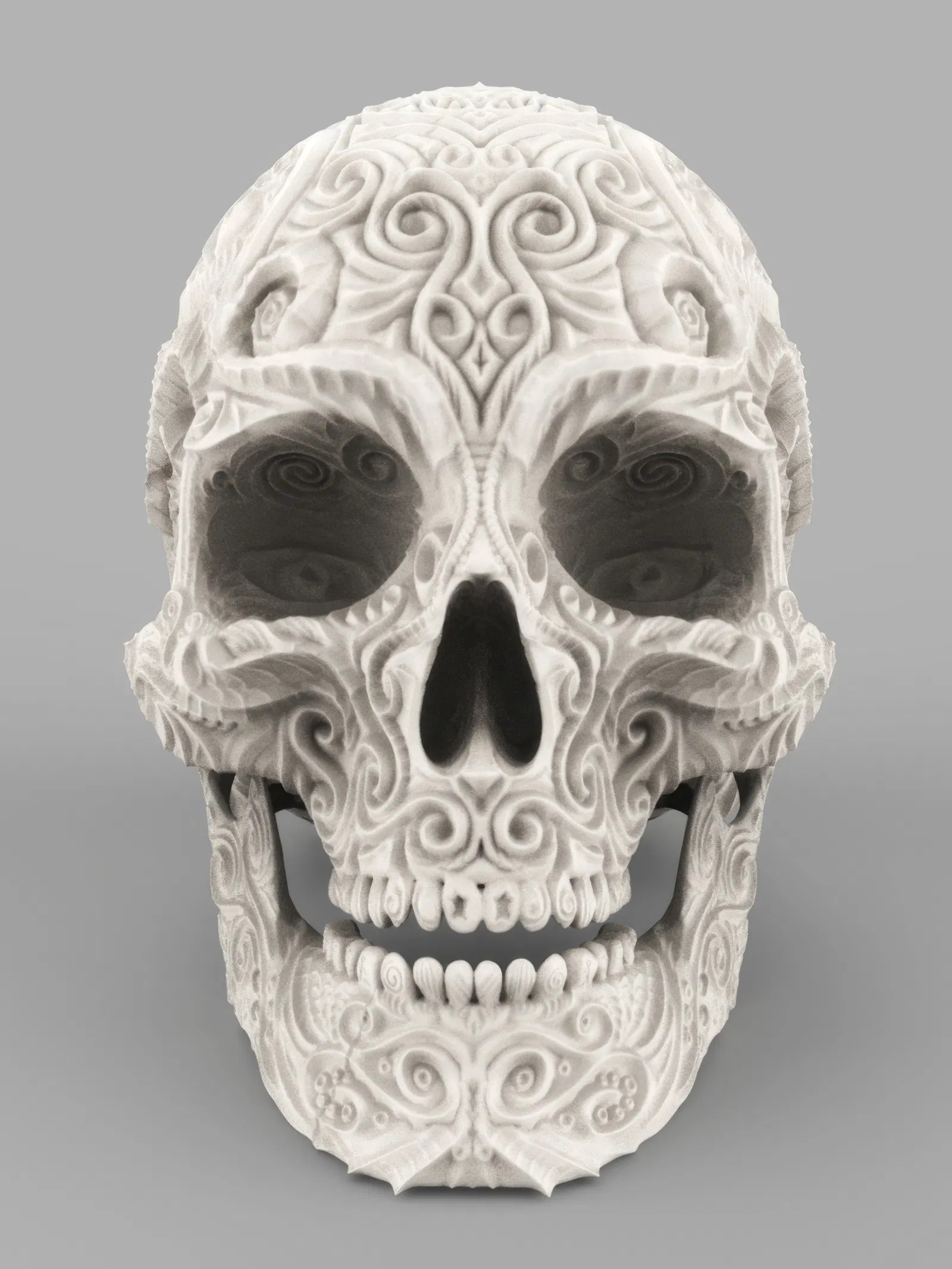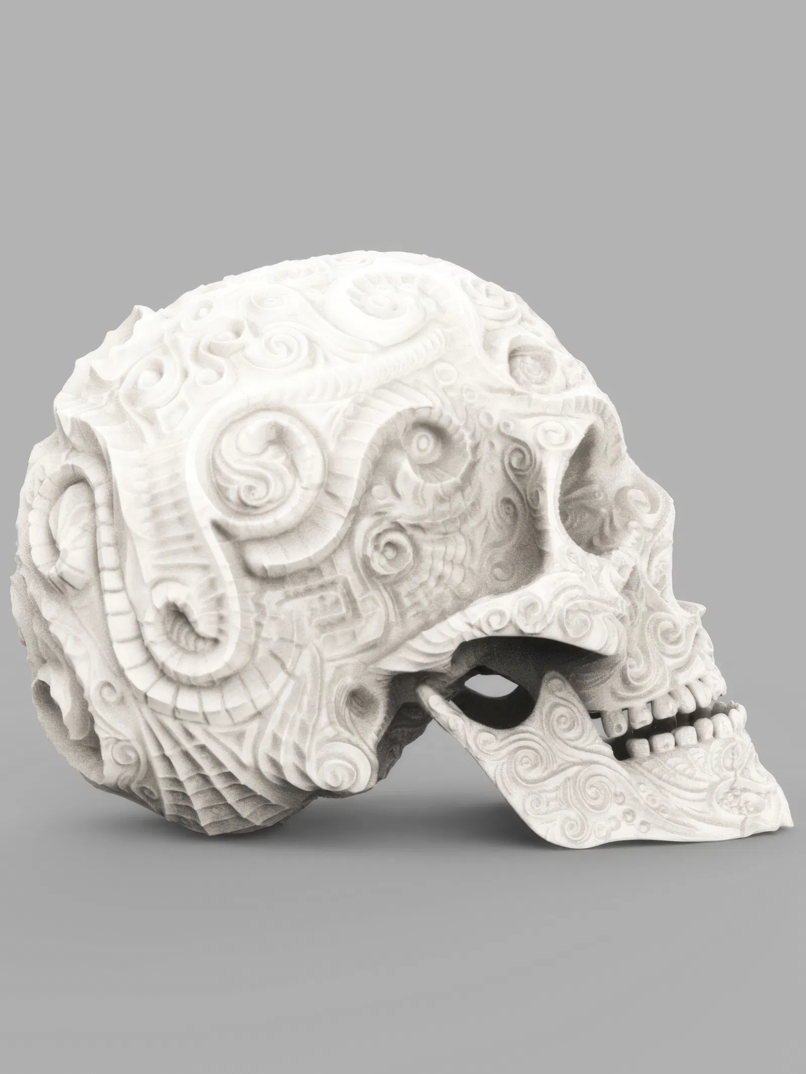 Mô hình hộp sọ được điêu khắc tinh xảo theo phong cách hoa văn cổ điển, tạo cảm giác vừa độc đáo vừa thư giãn. Hoàn hảo để trang trí, thu hút mọi ánh nhìn.