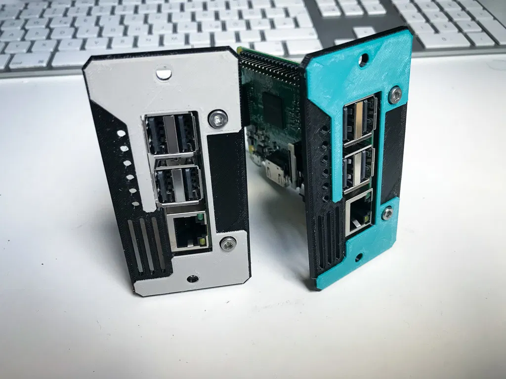 Mô tả chi tiết về khung gắn rack cho Raspberry Pi 2 và 3, thiết kế theo kiểu modular cho hệ thống 19 inch 2U. Có tùy chọn in nguyên khối hoặc chia 2 phần, cùng hướng dẫn lắp đặt chi tiết.