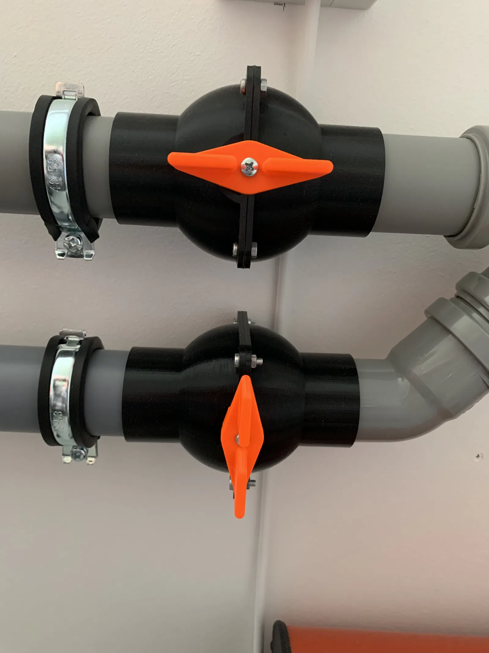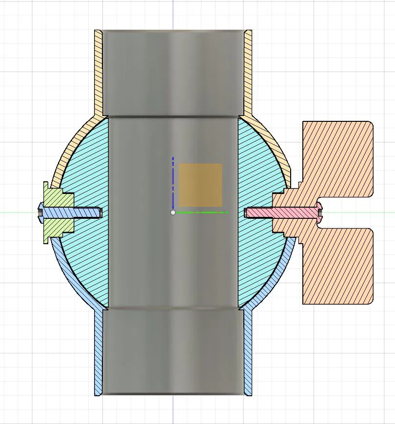 Phần này dựa trên thiết kế của @PeterH1500 và được chỉnh sửa để phù hợp với ống PVC 50mm. Tay gạt được thiết kế lại cho dễ cầm hơn (nhưng cần in có support) và có điểm dừng để chỉ xoay được 90 độ, đóng/mở.