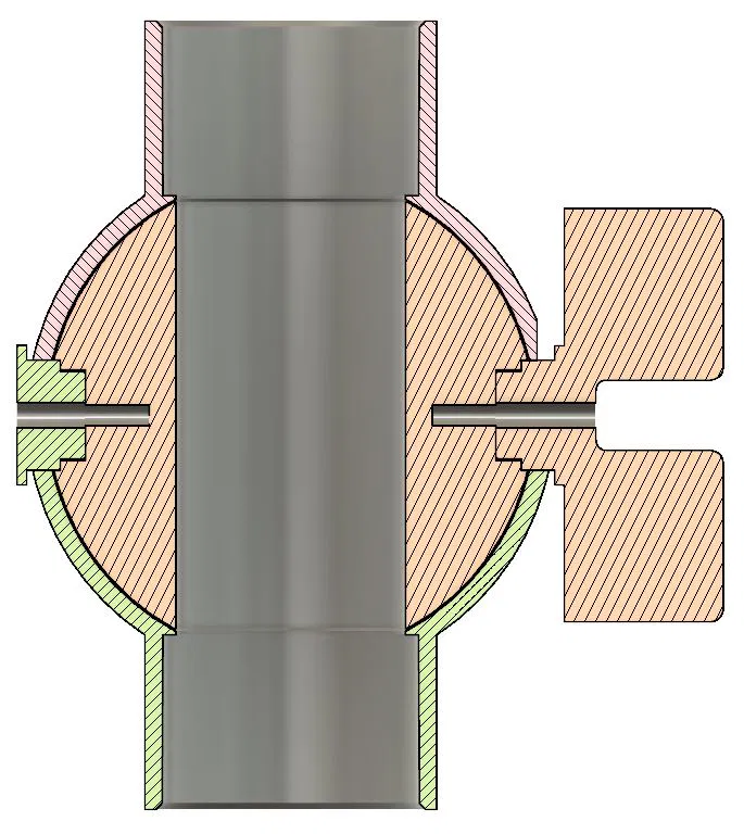 Van bi phù hợp với ống PVC 40mm. Phiên bản này được chỉnh sửa cho kích thước ống 40mm, giữ nguyên kích thước vòng bi và tay gạt như phiên bản 50mm.