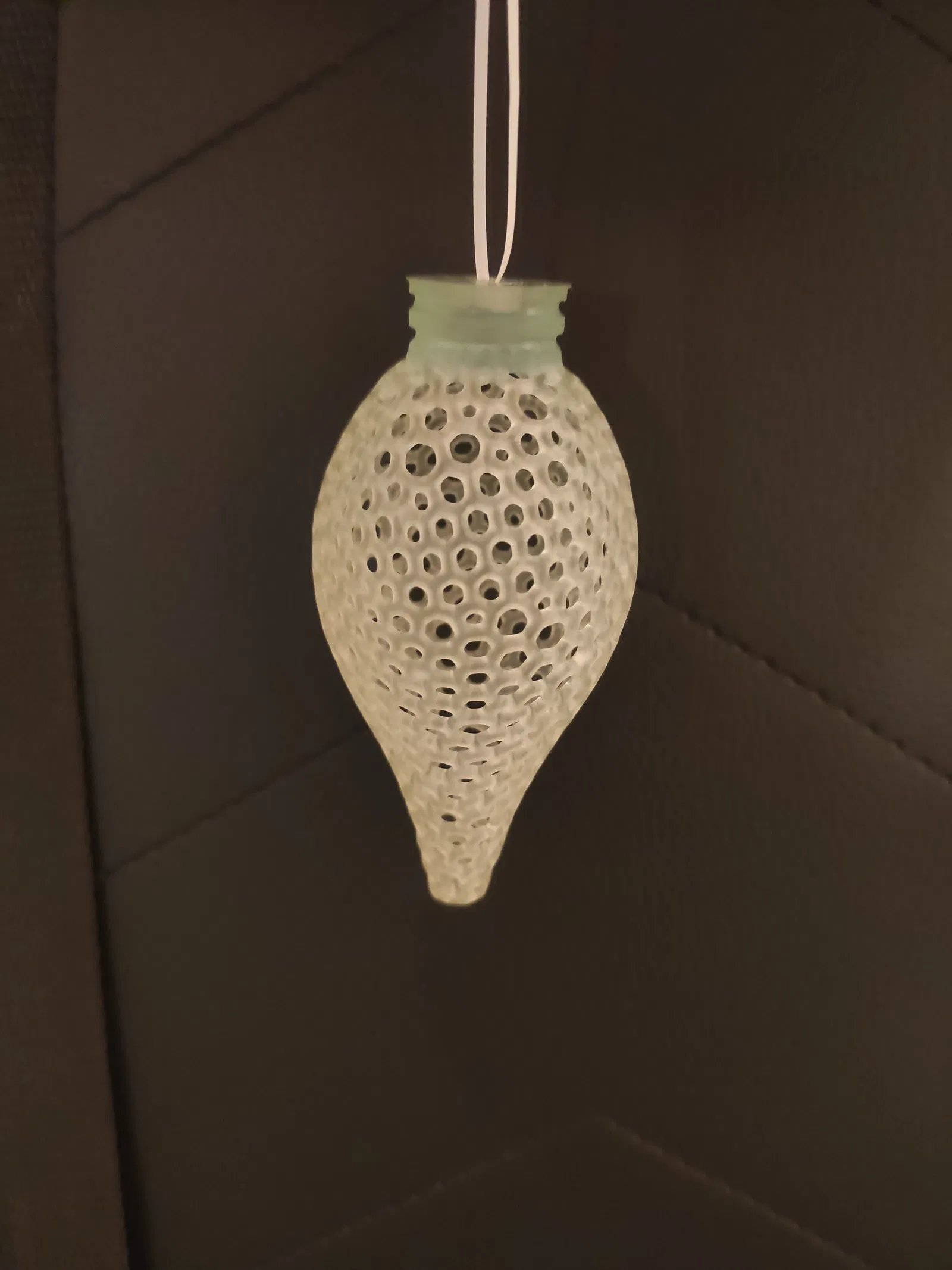Phiên bản rỗng của quả châu trang trí Giáng sinh voroni này được tối ưu hóa để in trên máy in SLA. Nó không cần bất kỳ vật liệu hỗ trợ nào, điều duy nhất bạn cần lưu ý là làm sạch nhựa bị kẹt trong móc treo trong quá trình in, nếu không nó sẽ cứng lại trong quá trình xử lý sau in và ngăn không cho bất kỳ sợi chỉ nào luồn qua lỗ.