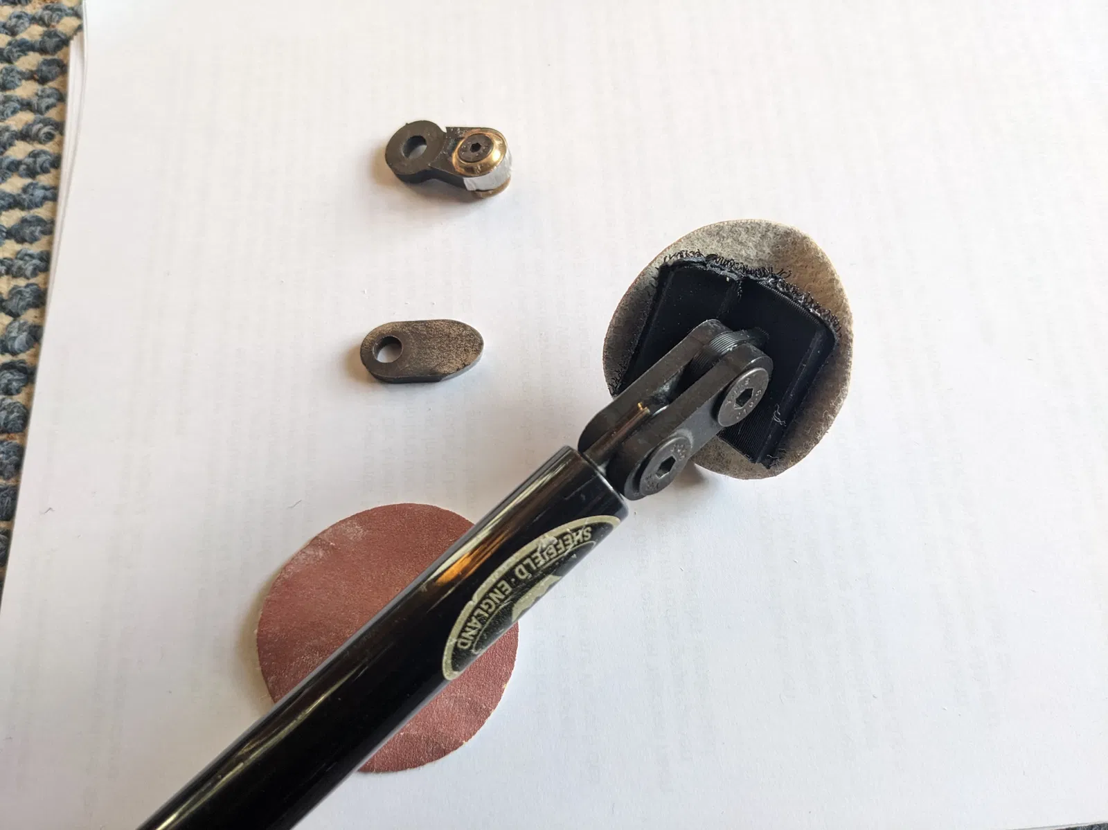 Tôi cần chà nhám bên trong một bộ phận gỗ tiện hẹp nhưng sâu (cho một bộ phận "Weizenholz"). Việc chà nhám bên trong bằng tay rất nguy hiểm, và bạn cũng không thể chạm tới đáy.